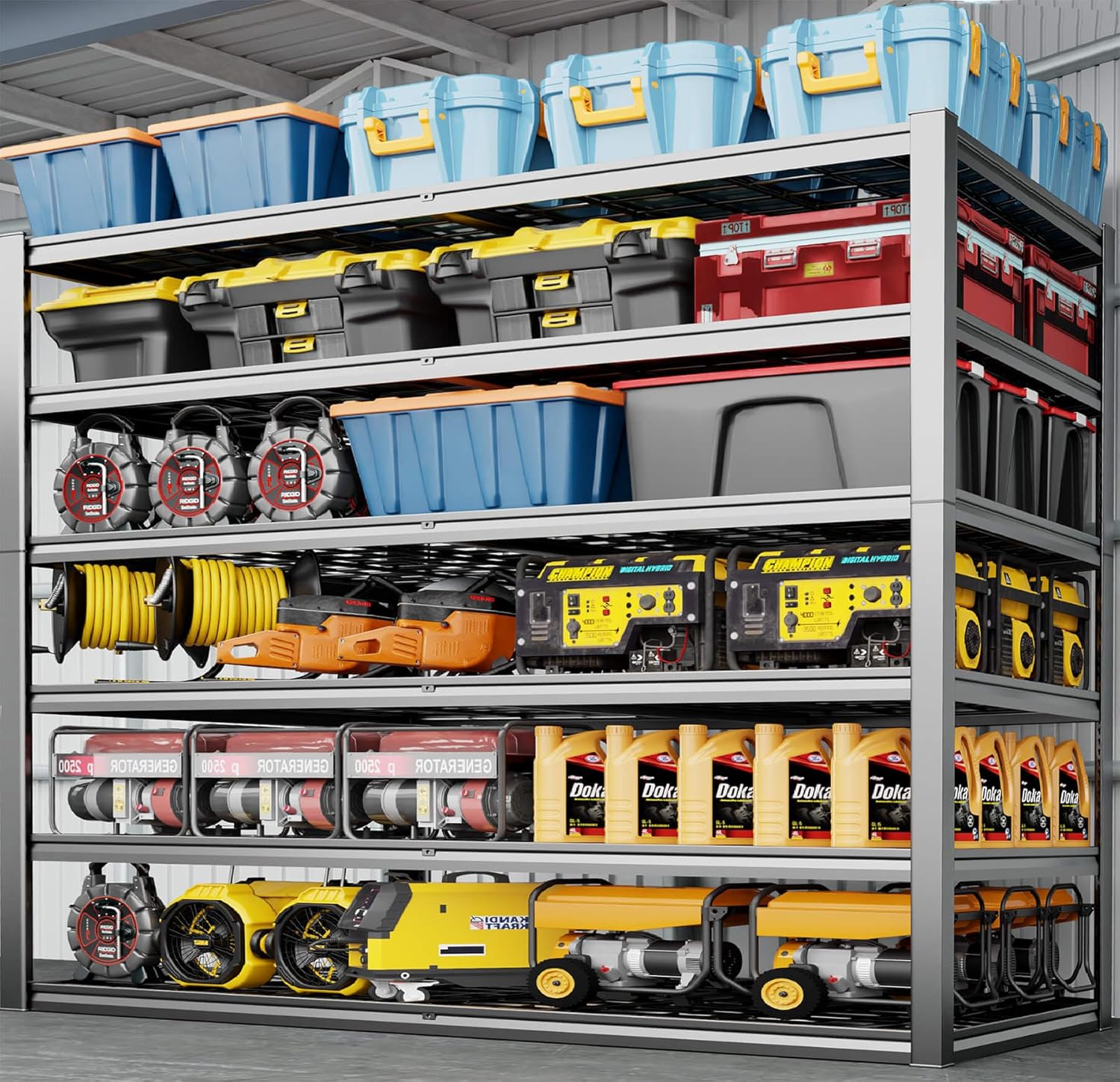 - 【6 Tier 60 "W x 84"H x 24"D Wide Storage Shelves heavy duty】Large heavy duty garage shelving is suitable for garage, warehouse, basement,Library, commerical, industrial etc. The 6 tier metal shelves for storage shelves expands your storage space, makes your home clean .