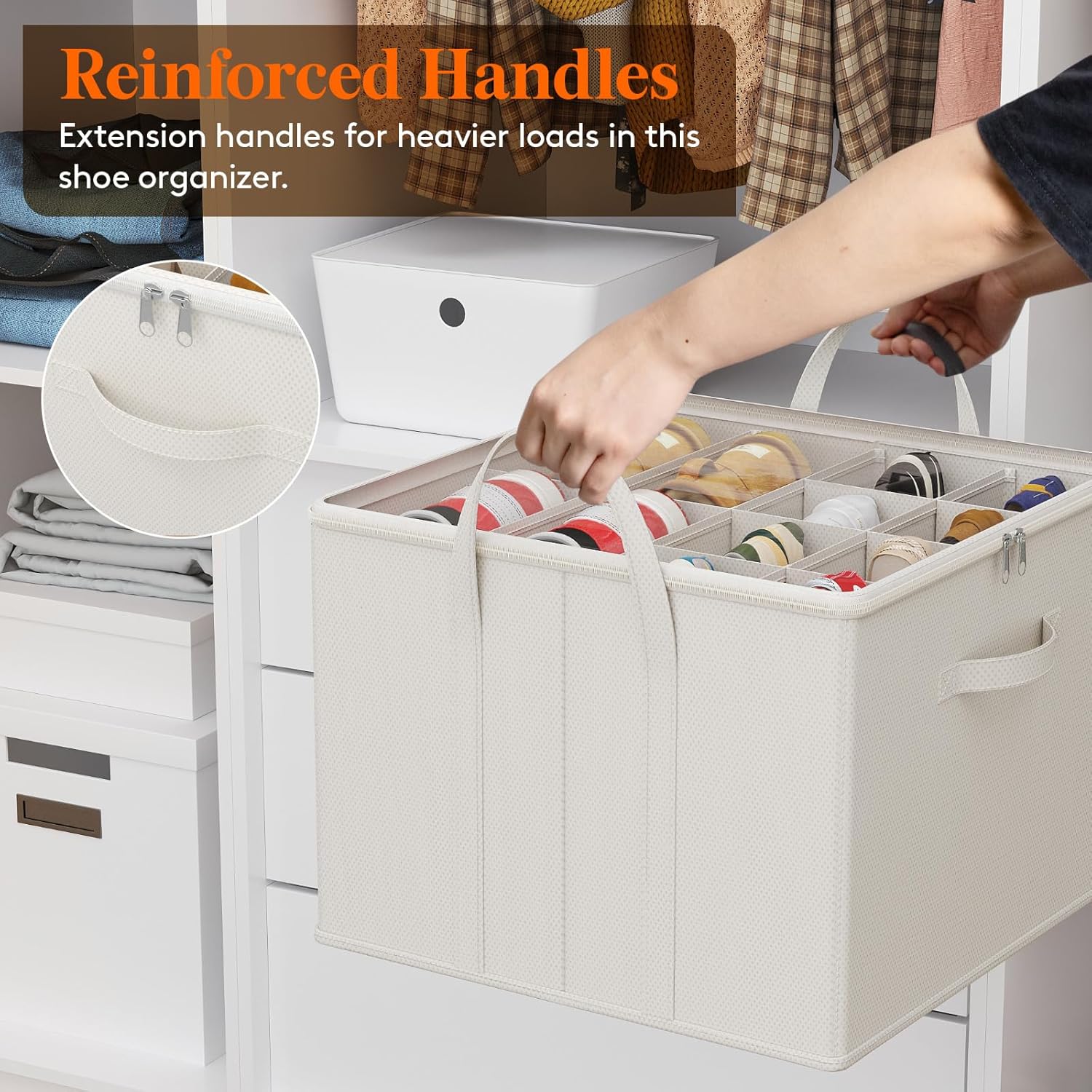 - Reinforced Structure: Crafted from non-woven fabric and reinforced cardboard, this shoe box features three sturdy handles for easy transport. Its robust side and bottom panels ensure shape retention under pressure, offering reliable long-term use