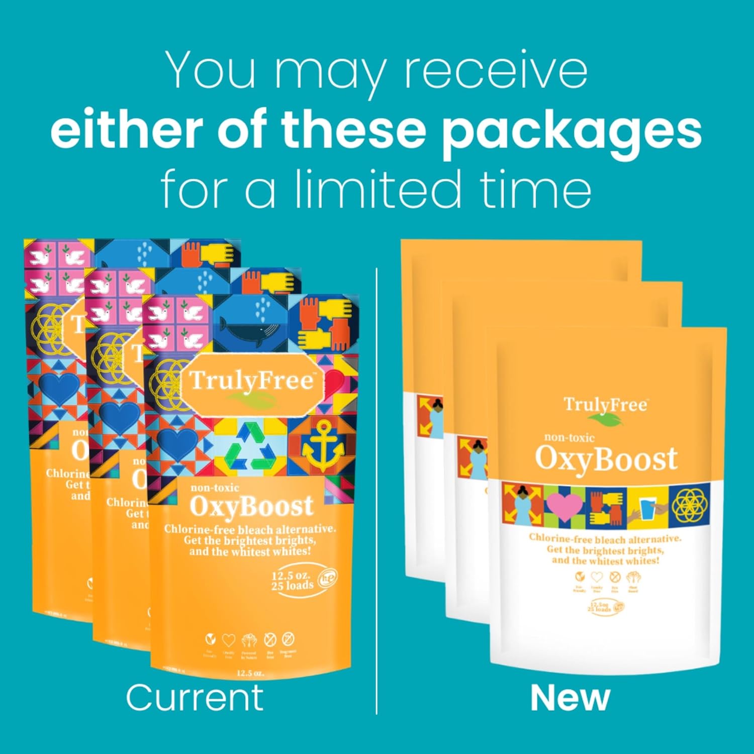 Truly Free OxyBoost - Oxygen Whitener & Clothes Stain Remover Laundry Detergent Powder with Sodium Percarbonate - Brightens Whites & Safe for Colors - Non-Chlorine, Gentle Yet Powerful - Pack of 3