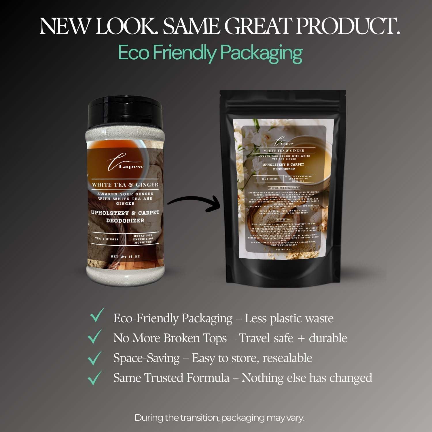 - Powerful Odor Eliminator for Strong Odors: Say goodbye to stubborn smells with the Lapew White Tea & Ginger Carpet Freshener Powder, specially formulated to tackle everyday room odors.