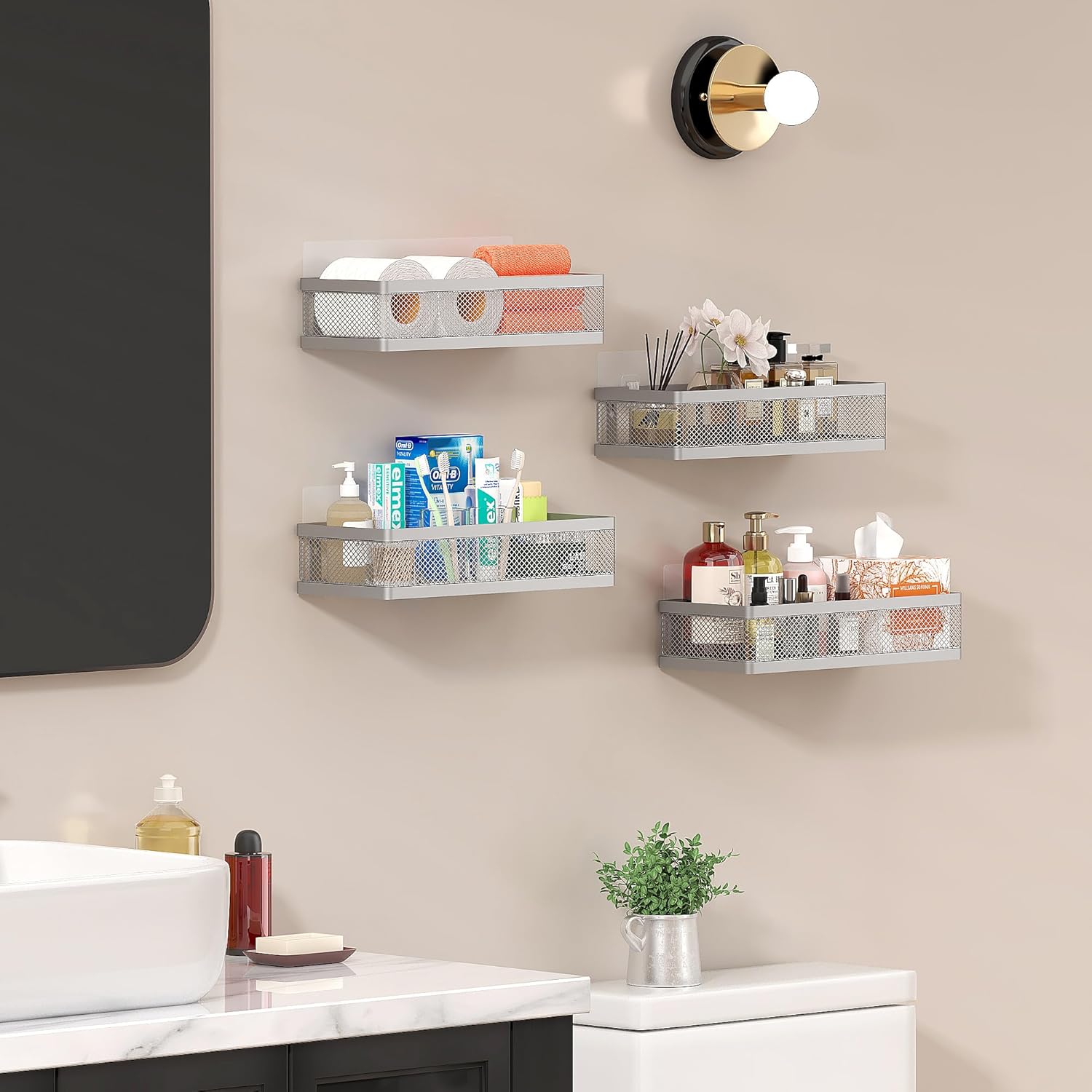 - Included Components : 2 baskets, 2 traceless sticker, 4 hooks, 4 screws, 4 wall stoppers