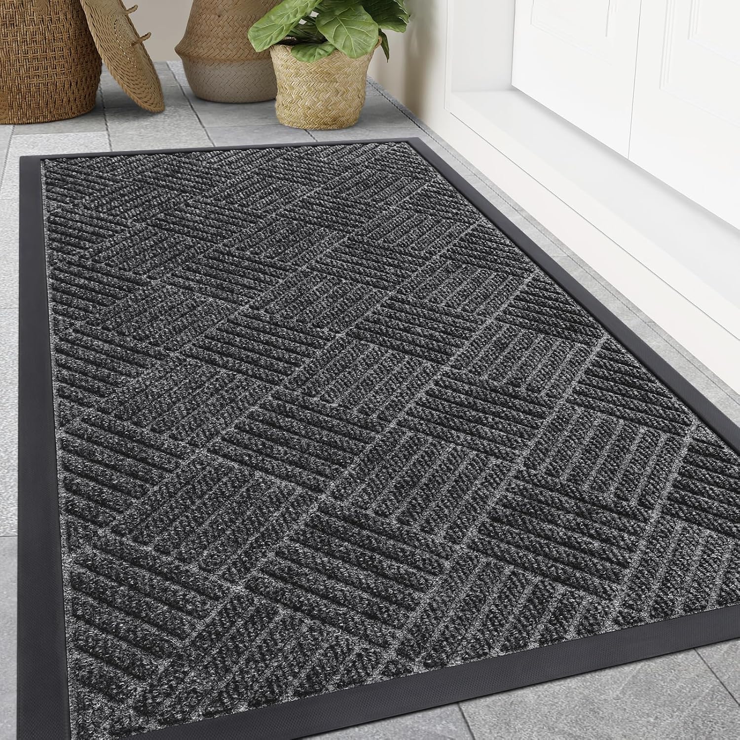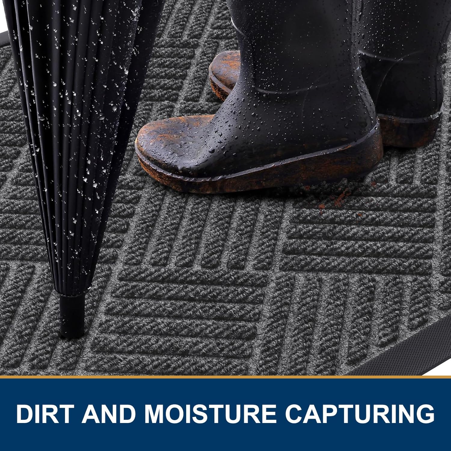 - Capture Dirt and Moisture: The surface of the Smiry door mat is crafted from woven polyester fabric. The deep grooves can effectively trap the dust, gravel, mud, sand and other clutter. The sturdy beveled rubber edge will not accumulate water. Even rainy, snowy or muddy weather will keep your home dry and clean
