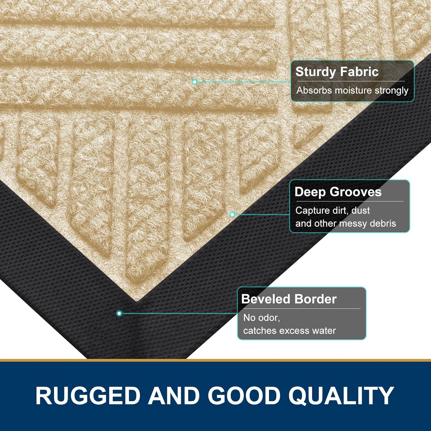 - Capture Dirt and Moisture: The surface of the Smiry door mat is crafted from woven polyester fabric. The deep grooves can effectively trap the dust, gravel, mud, sand and other clutter. The sturdy beveled rubber edge will not accumulate water. Even rainy, snowy or muddy weather will keep your home dry and clean