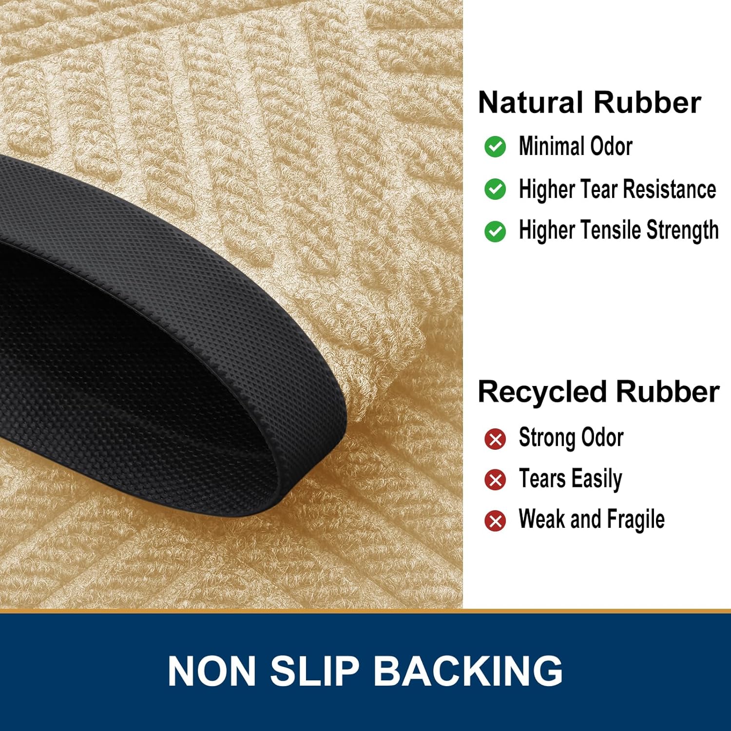 Smiry Front Door Mat Outside Entrance, Heavy Duty Outdoor Indoor Natural Rubber Doormat, Non Slip, Trap Dirt and Moisture, Easy Clean, Low Profile Patio Porch Entryway Mat, 59x35, Beige