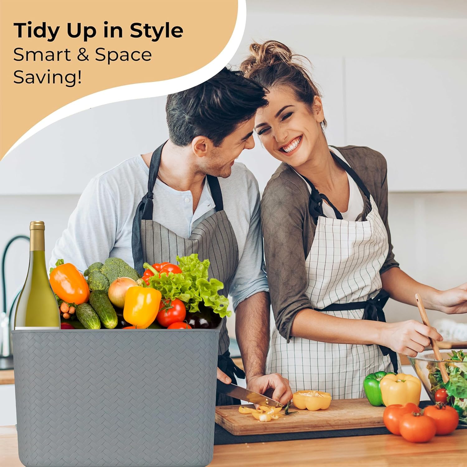 - Premium Wicker-Style Texture with Modern Aesthetic- Add elegance to your home with the decorative woven exterior. The neutral colors complemens all decor styles—modern, rustic, boho, or minimalist—making these bins as stylish as they are functional.