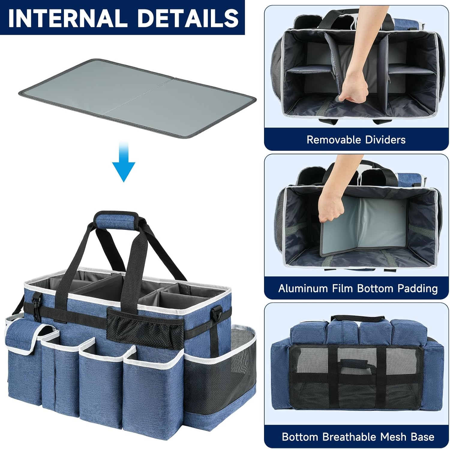 - Premium Quality: The cleaning supplies organizer is made of high quality nylon materials with thicker lining, which is wearable and sturdy,and it with heavy duty breathable mesh base, and come with an extra aluminum film bottom padding