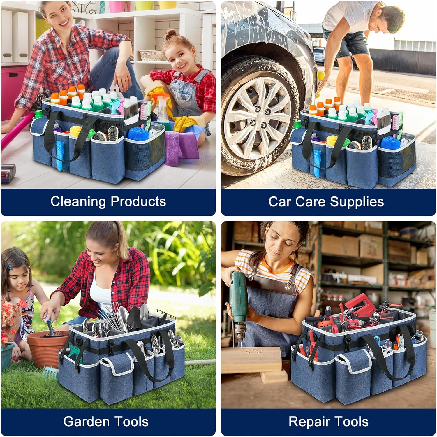 Cleaning Caddy Bag,Extra Large Cleaning Supplies Organizer with Handle for Housekeepers,Blue