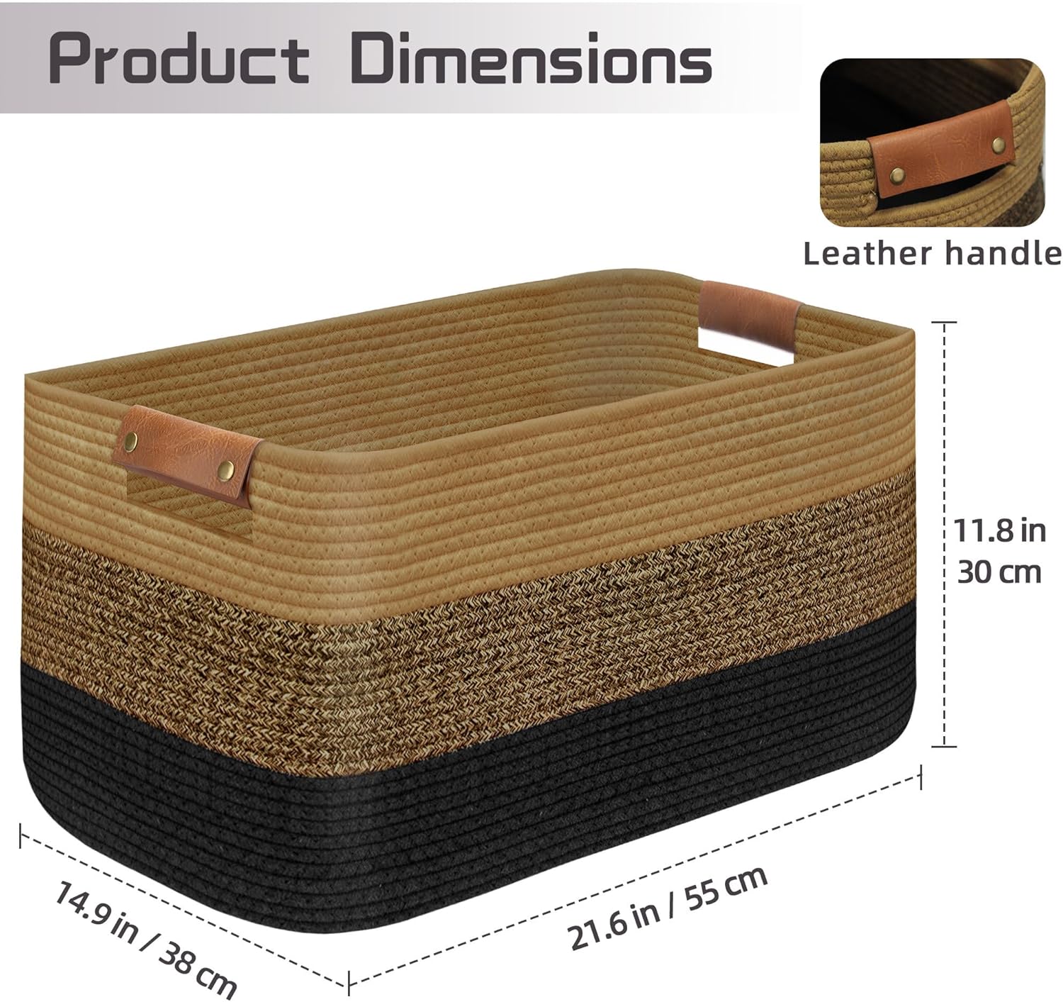 - Decorative & Versatile: Pure Natural Material Elevates Any Space - Laundry, Toys, or Blanket Storage Solution.The elegant leather handles not only take care of your hands but also add a distinctive highlight to our large baskets.