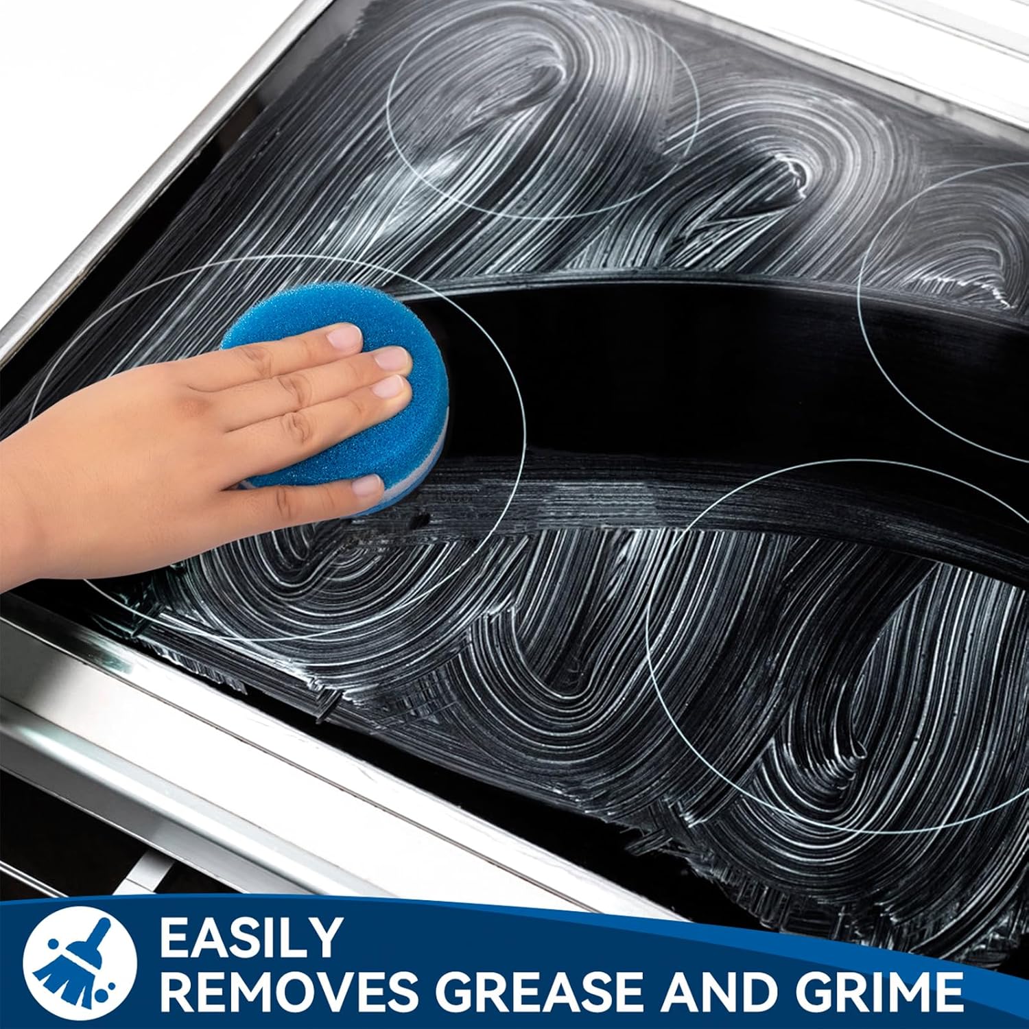 - Easy to Use:Simplify your cleaning routine with our stove cleaner—no special tools or scrapers needed. Just apply the cleaner to your cool stovetop using a damp sponge, wipe thoroughly, and for stubborn burnt stains, gently treat with sandpaper.
