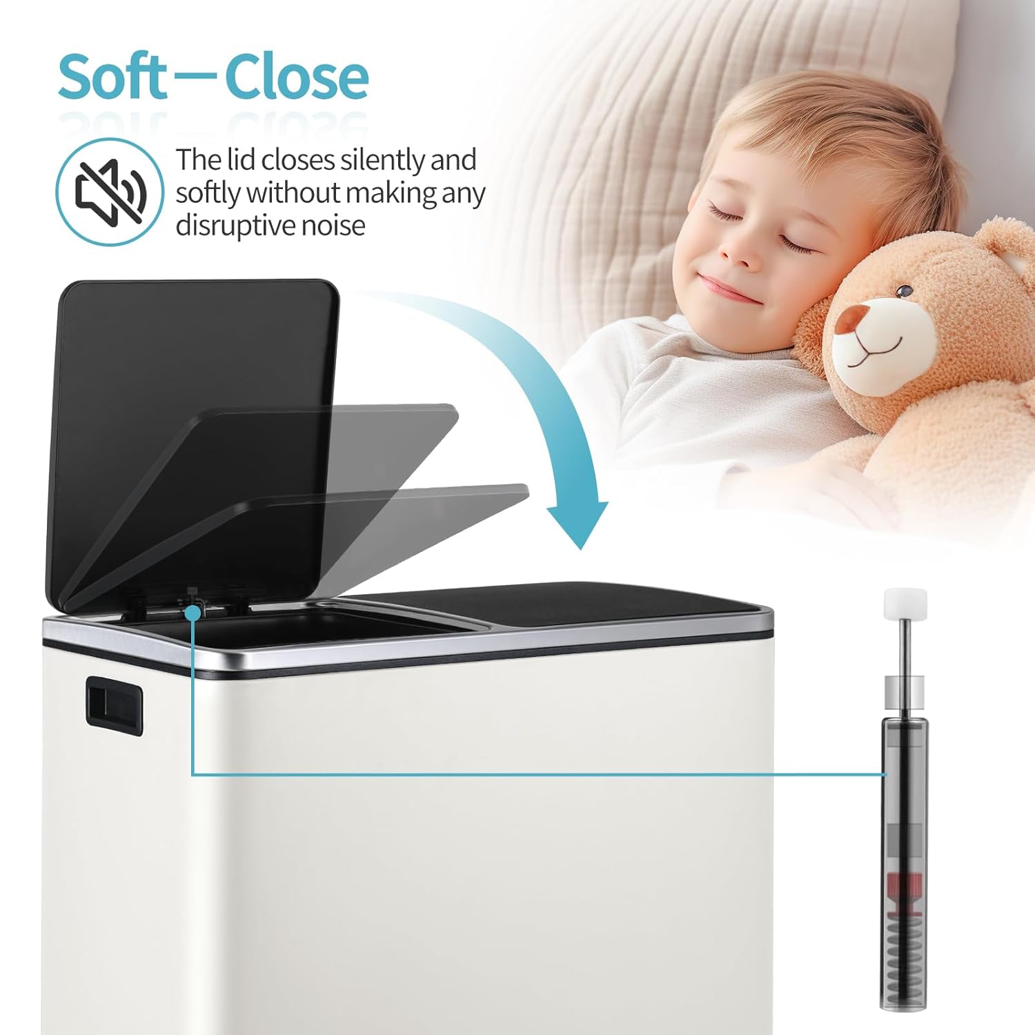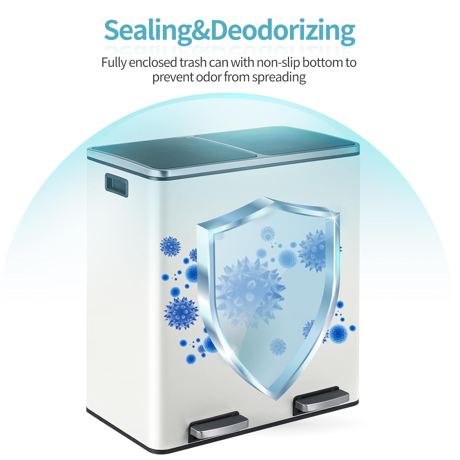 - 2Ă—8-Gallon Compartments: 16-gallon step trash can has two compartments, combining garbage and recycling. Completely separated dual garbage and recycling can also avoid the smell of garbage. 2 removable inner buckets increase convenience