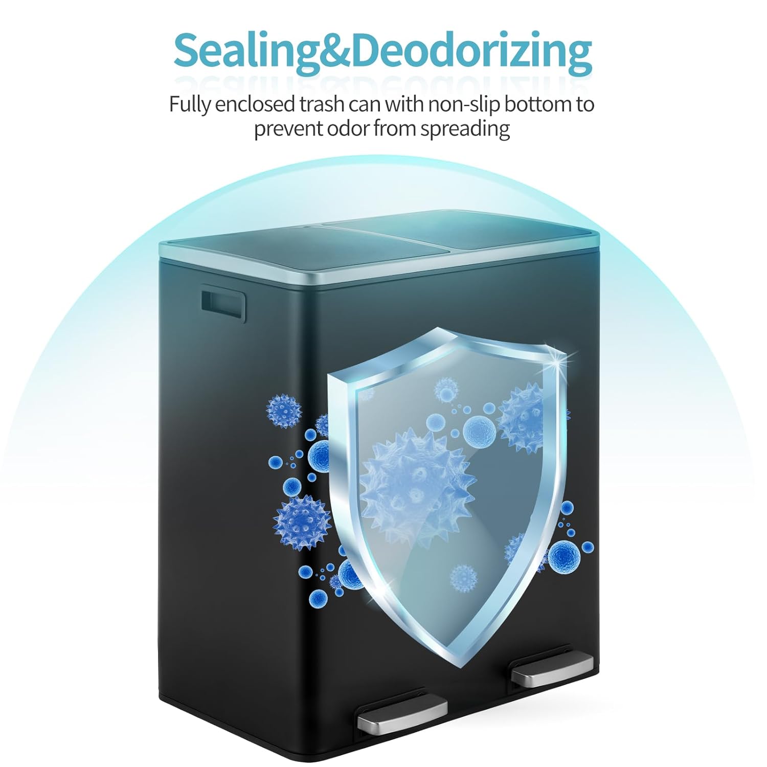 - 2Ă—8-Gallon Compartments: 16-gallon step trash can has two compartments, combining garbage and recycling. Completely separated dual garbage and recycling can also avoid the smell of garbage. 2 removable inner buckets increase convenience