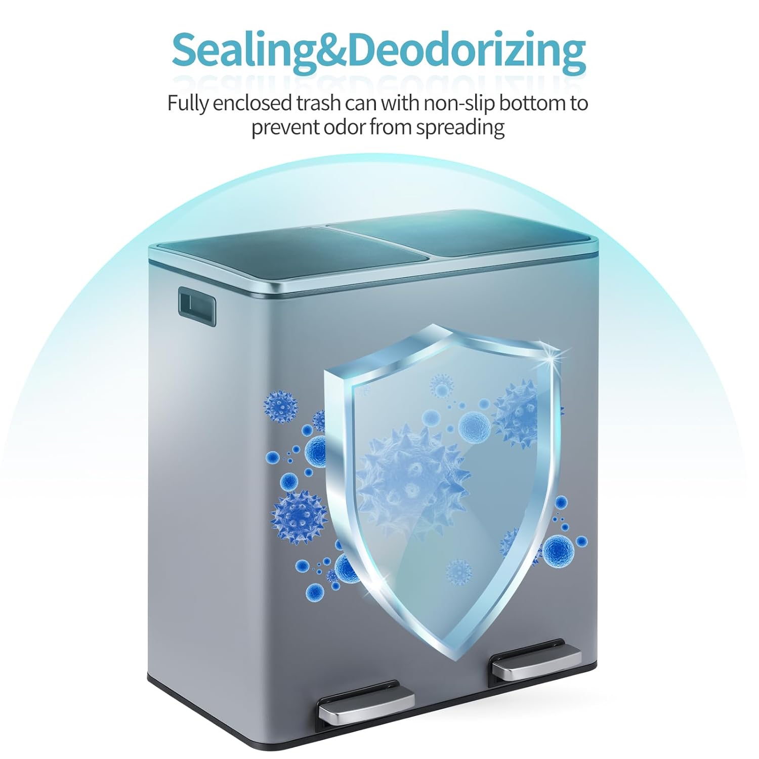 - 2Ă—8-Gallon Compartments: 16-gallon step trash can has two compartments, combining garbage and recycling. Completely separated dual garbage and recycling can also avoid the smell of garbage. 2 removable inner buckets increase convenience