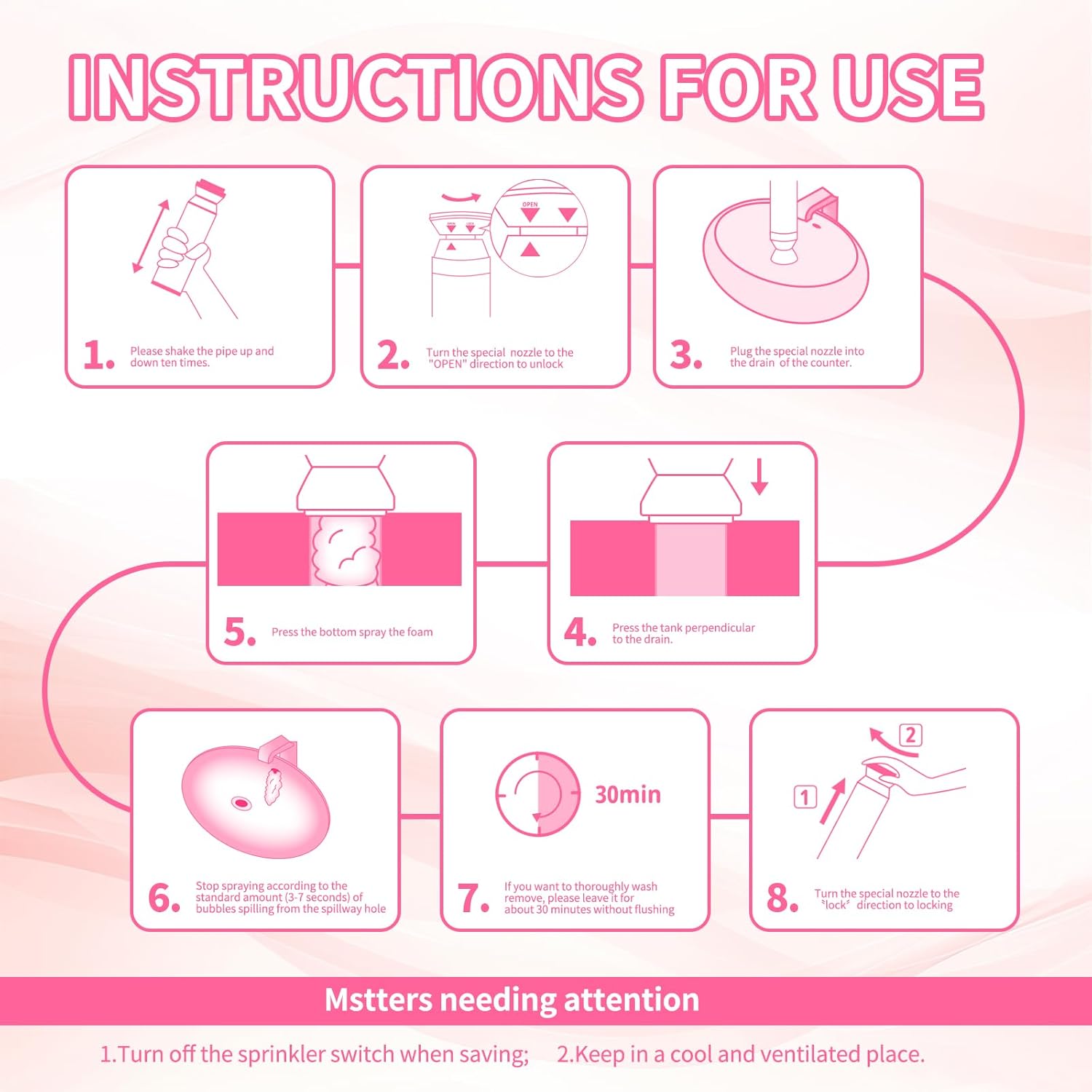 - [Safety Materials] - Foaming Drain Cleaner is made from Gentle formula,no harm to the pipeline. It won't damage your drains, pipes. Removes clogs fast and effectively in bathroom sinks, kitchen sinks, showers and bathtubs.