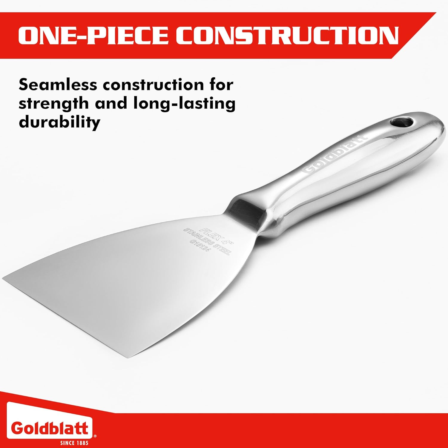 Goldblatt 4" Putty Knife, One-Piece Paint Scraper Tool, All Stainless Steel Joint Knife with Flexible Blade, Seamless Design, Metal Ergonomic Handle - for Drywall Repairing, Finishing and Scraping