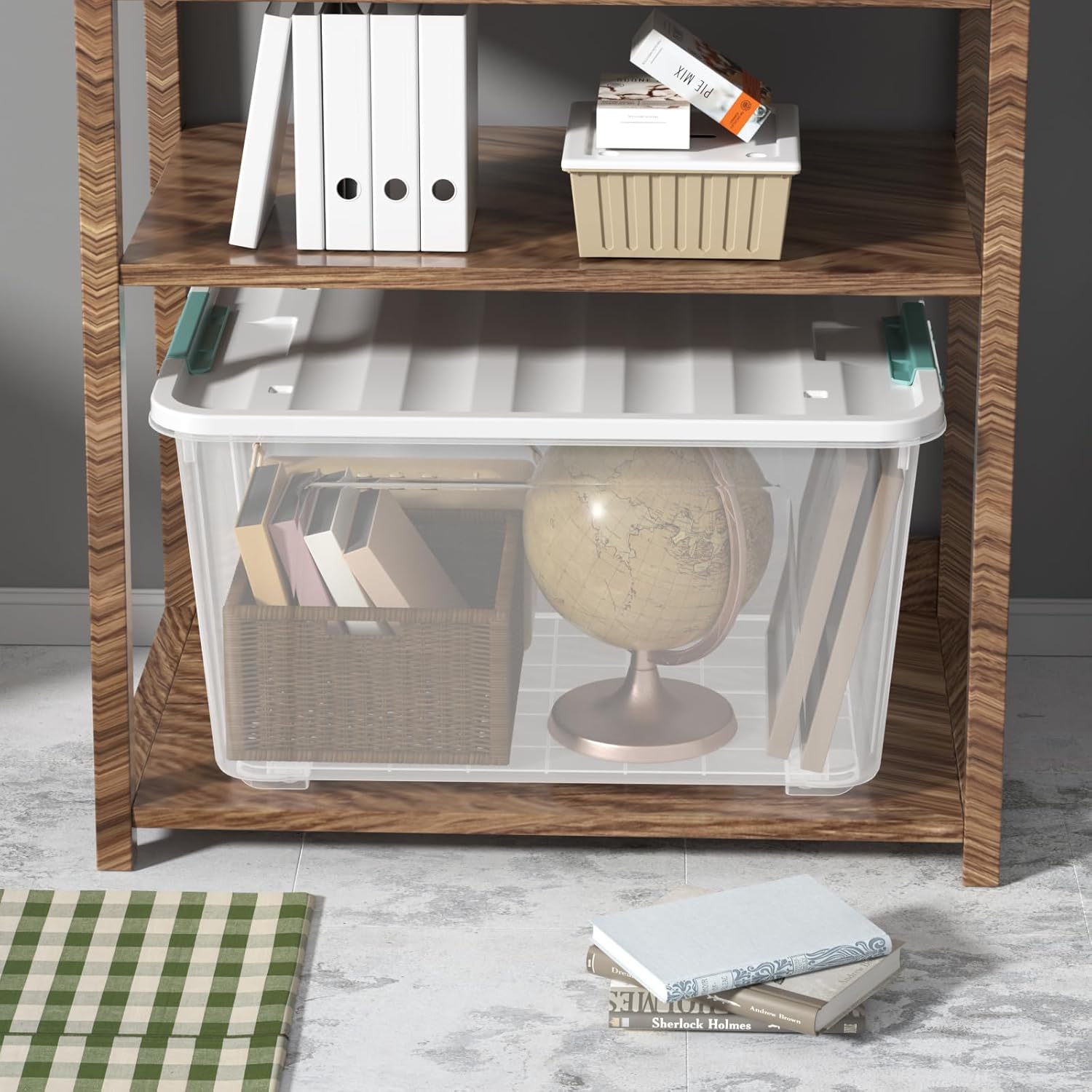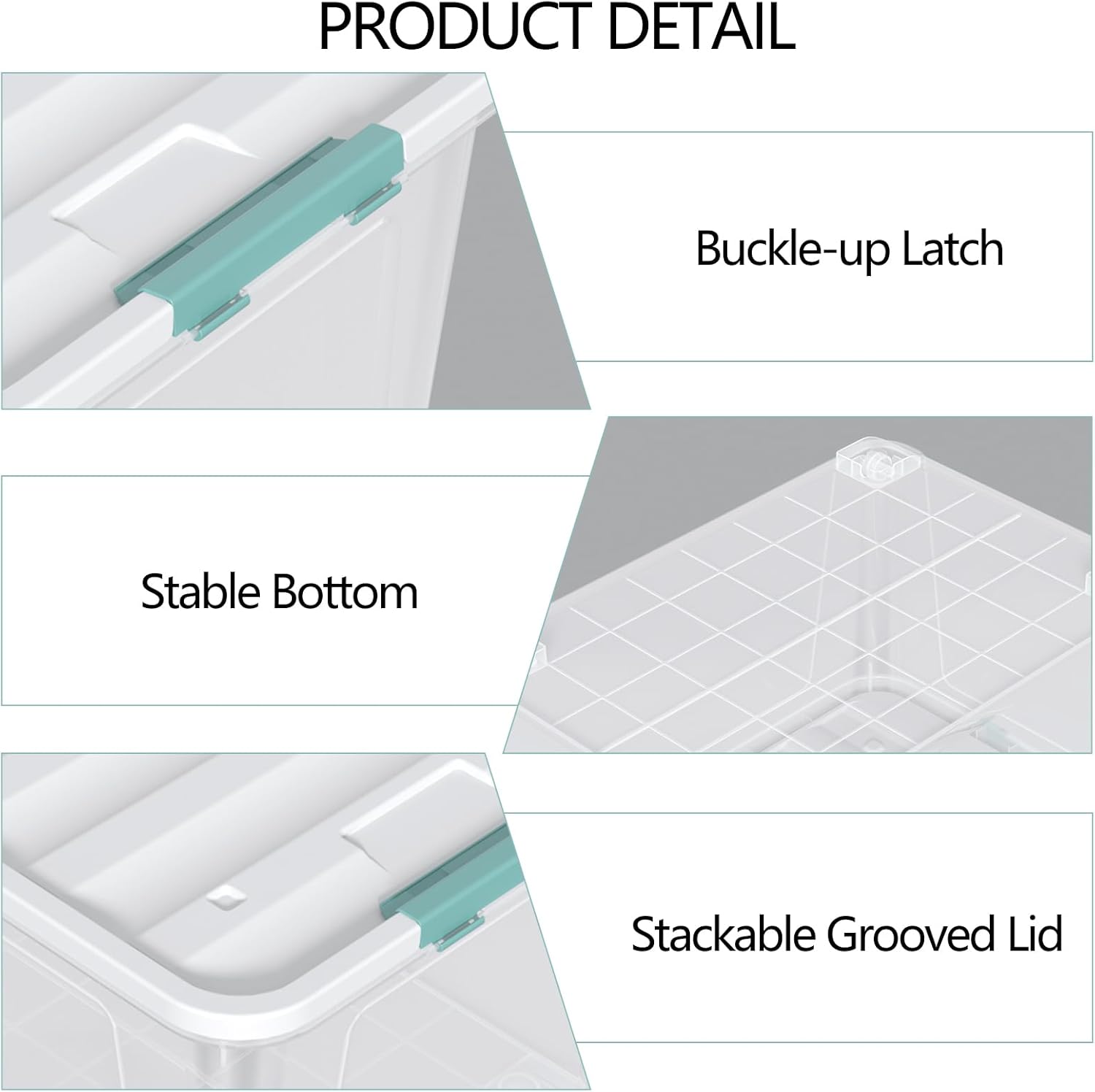 Zopnny 2-Pack Large Latching Box, 85 Quart Plastic Storage Bin with Lid, Stackable Totes w/Wheels, Clear