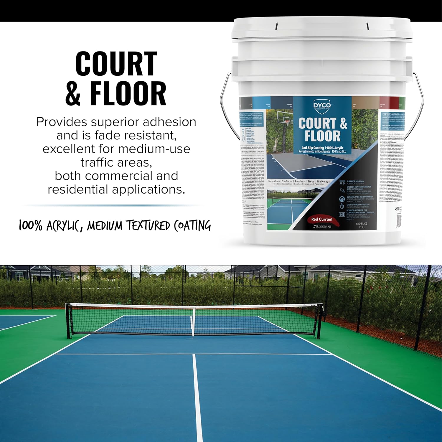 DYCO Court & Floor Anti-Slip Coating - Slip-Resistant Pavement, Cement & Concrete Paint for Pickleball, Tennis & Basketball Courts, Exceeds ADA Standards for Safety Areas (Red Currant, 5 Gallons)