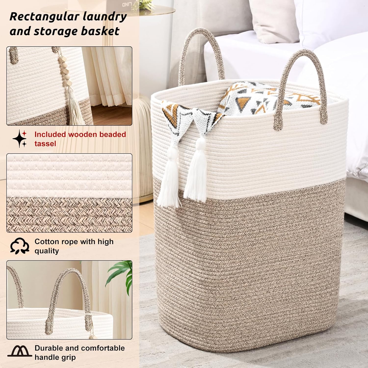 - 🌈[DURABLE, BREATHABLE & SKIN - FRIENDLY COTTON]: Made of sturdy and odor-free rope cotton, woven laundry basket has a solid addition to any space. Tall laundry basket quite sturdy and spacious, capable of holding a good amount without losing its shape, which adds to its practicality.