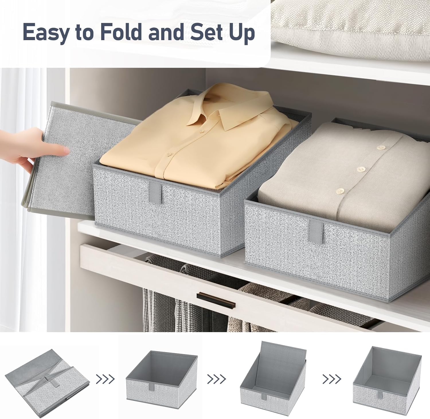 DIMJ Closet Storage Bins 10 Pack - Fabric Trapezoid Closet Organizer Bin, Foldable Storage Baskets for Shelves, Closet Shelf Organizer, Clothing Storage Box for Toys, Books, Towel, Clothes, Gray