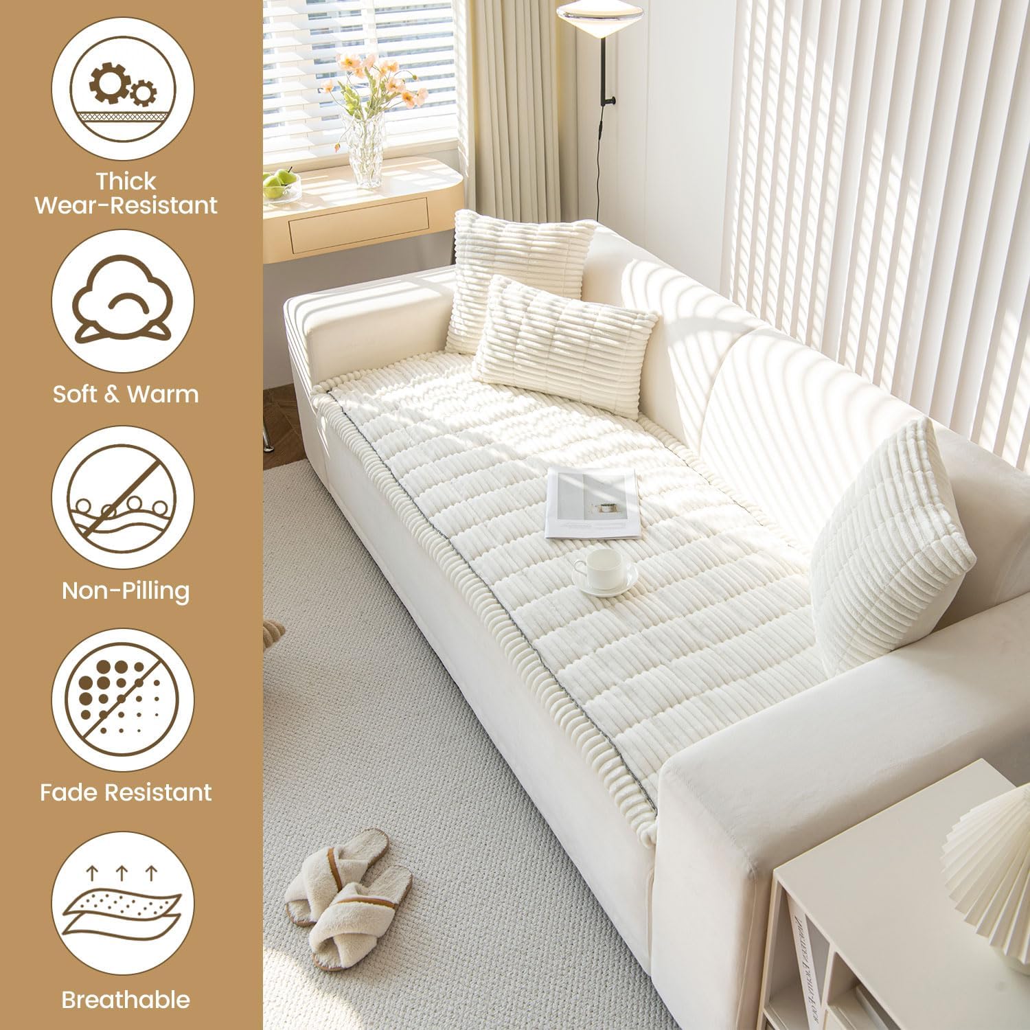 OTOB Couch Cover for Dogs Washable, Non Slip Plush Sofa Covers for 3 Cushion Couch, Fuzzy Pet Friendly Mat Bed Furniture Protector Sofa Slipcover, All Seasons (Cream, 27.6" x 70.9")
