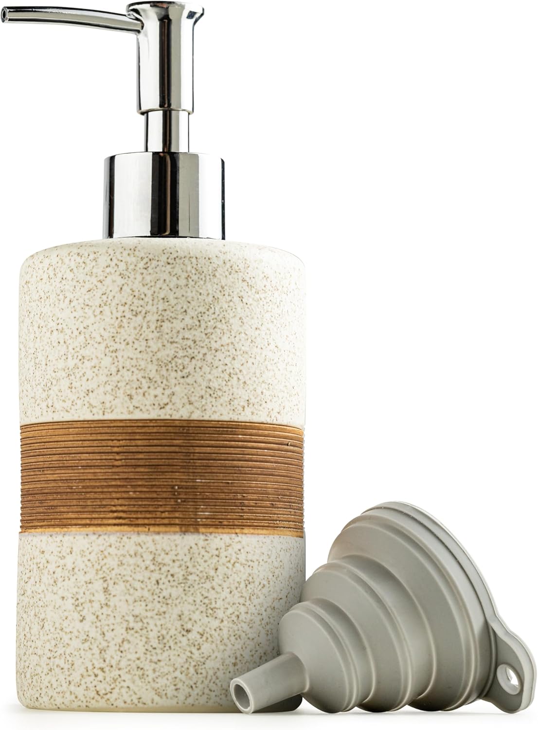 - Elegant & Functional Design: This 12 Oz matte ceramic soap dispenser adds a touch of modern charm to any space. Its elegant stripe texture pairs seamlessly with your kitchen or bathroom decor, making it a perfect addition to your countertop or sink area.