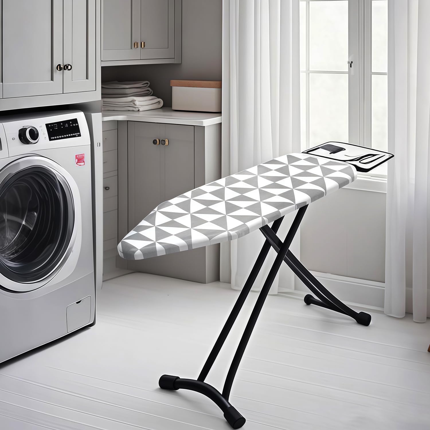 - 【Detachable and Washable Cover】:-The ironing board cover is designed for easy removal and washing. Simply detach it from the board and toss it in the washing machine for a quick and thorough clean. This feature helps maintain hygiene and prolongs the life of your cover.
