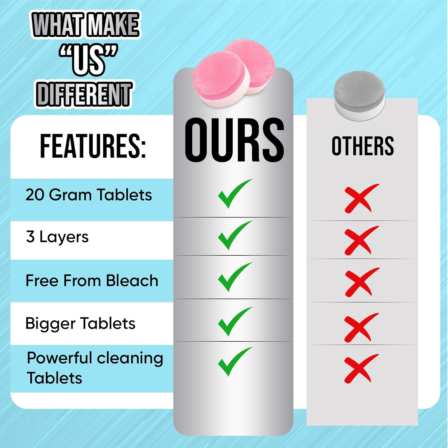 - 20g Large Cleaning Tablets – Bigger than standard cleaner tablets, these 20g tablets provide longer-lasting freshness and a more thorough clean, helping maintain a fresher kitchen environment.