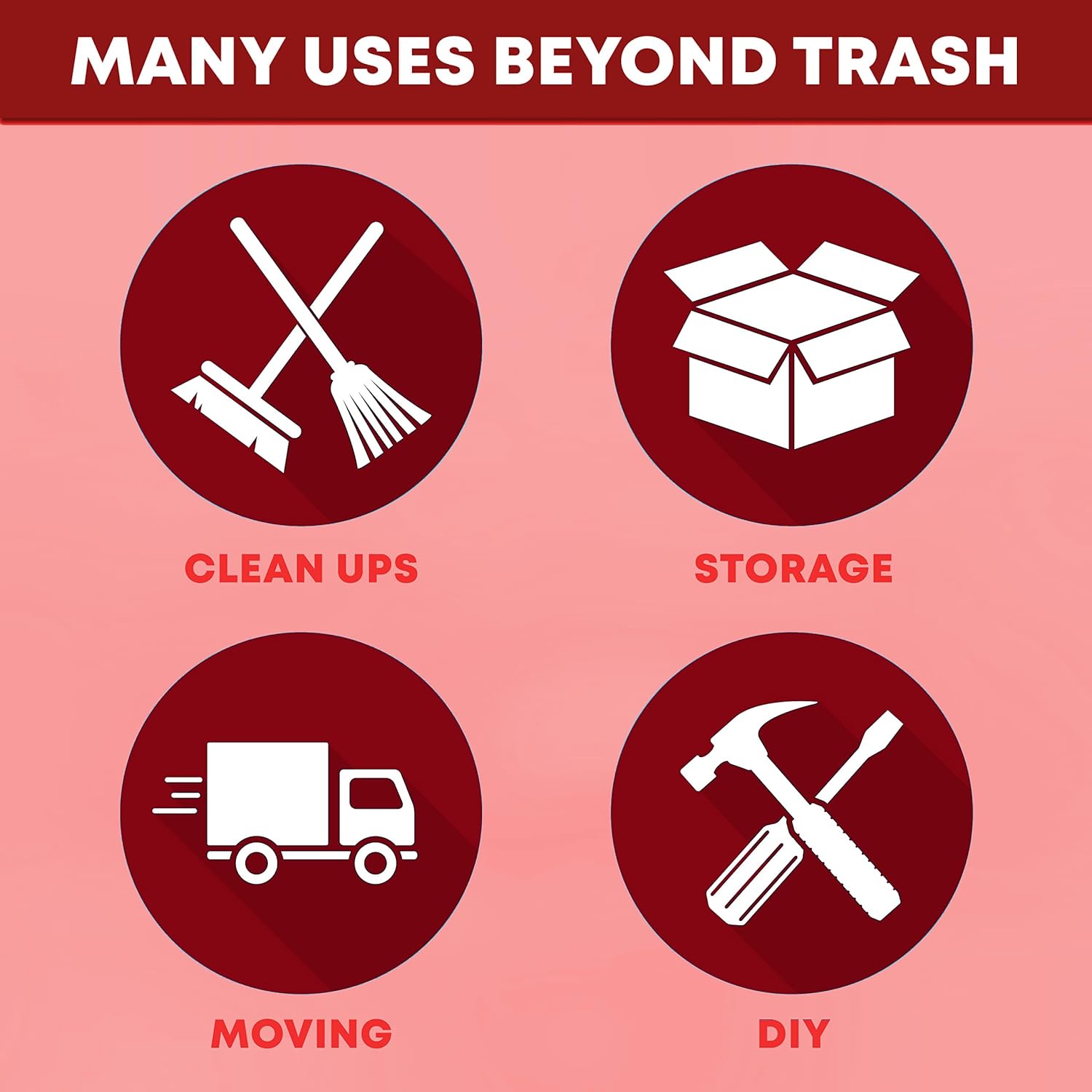 - LARGE BLACK TRASH BAGS - Great on site, in the workshop, or just out back, these bags are a perfect fit for large drum cans but do perfectly well free-standing.