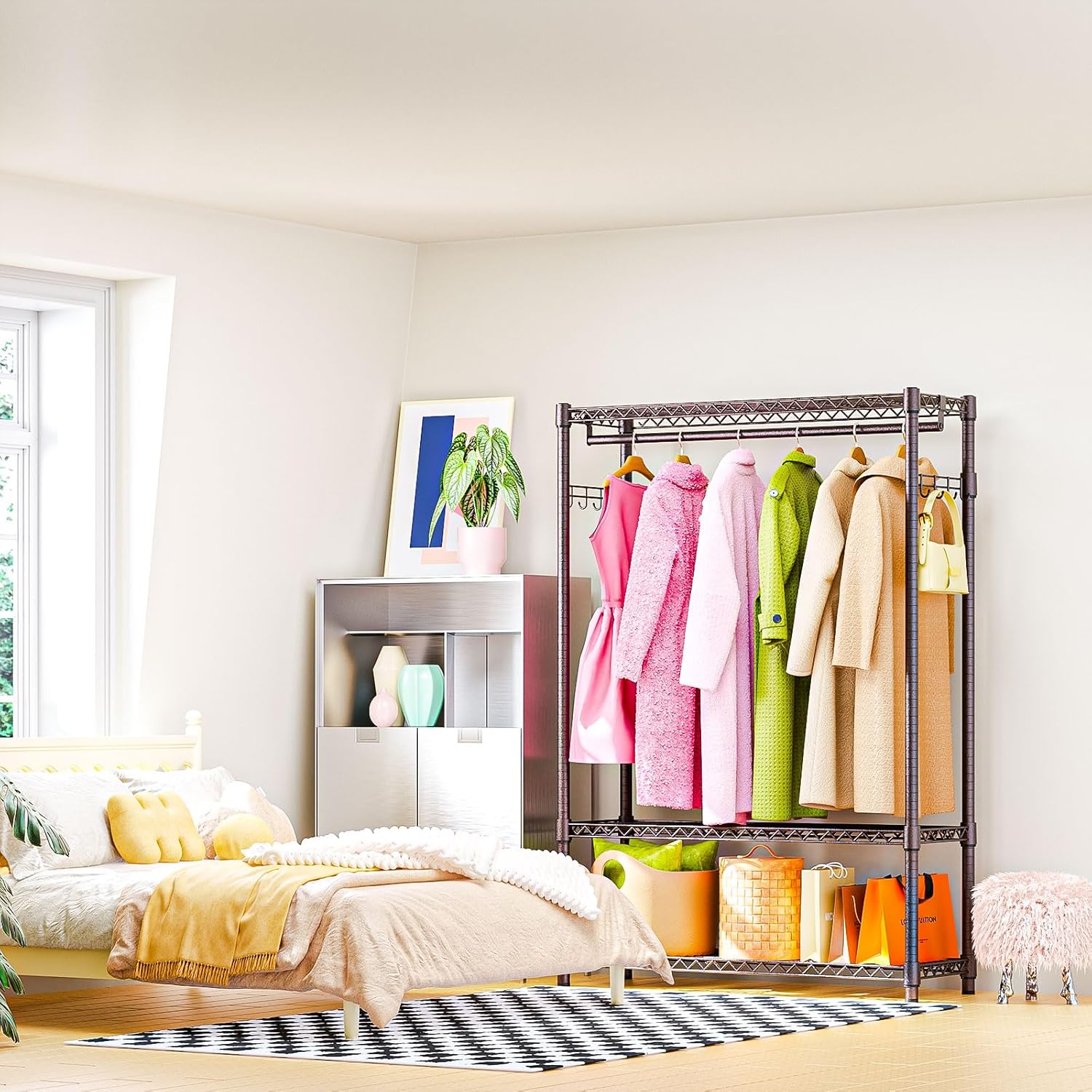 - Heavy-Duty and Durable Build : Crafted from premium carbon steel with anti-rust materials, this clothes rack features a sturdy 22.2mm diameter frame for long-lasting durability and stability