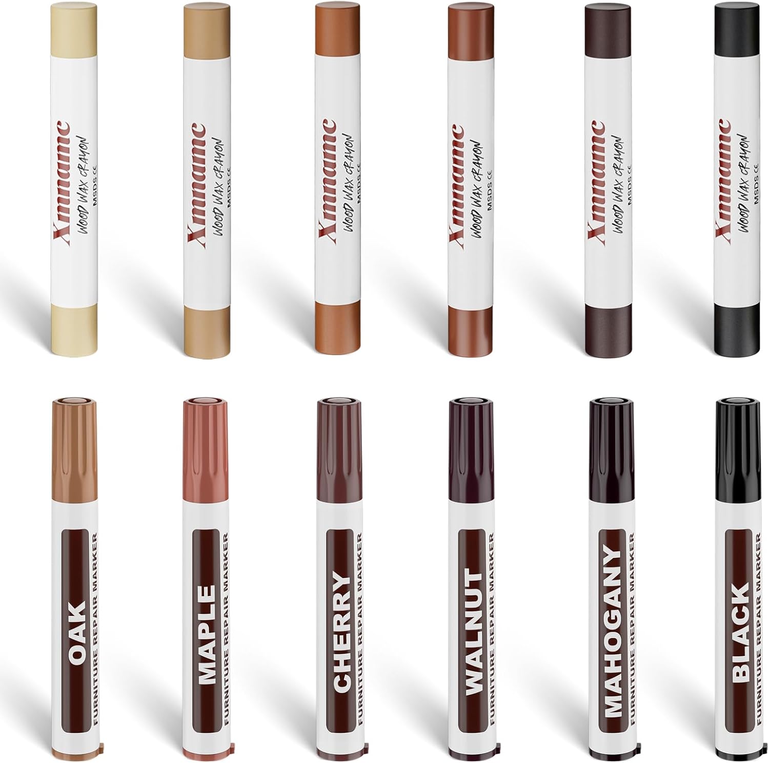 12 Colors Wood Filler Sticks Furniture Markers, Wood Floor Scratch Repair Kit for Repair Any Furniture Scratch, Scuffs, Cracks and Nail Holes on Wood Furniture, Floors, Doors, Cabinets, Tables