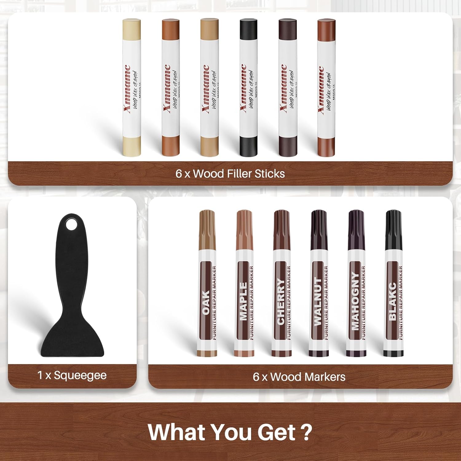 - Scratch Repair: They can effectively fill in scratches,holes, scuffs, and cracks on the surface of wood furniture, making the scratches less noticeable and restoring the furniture's appearance.