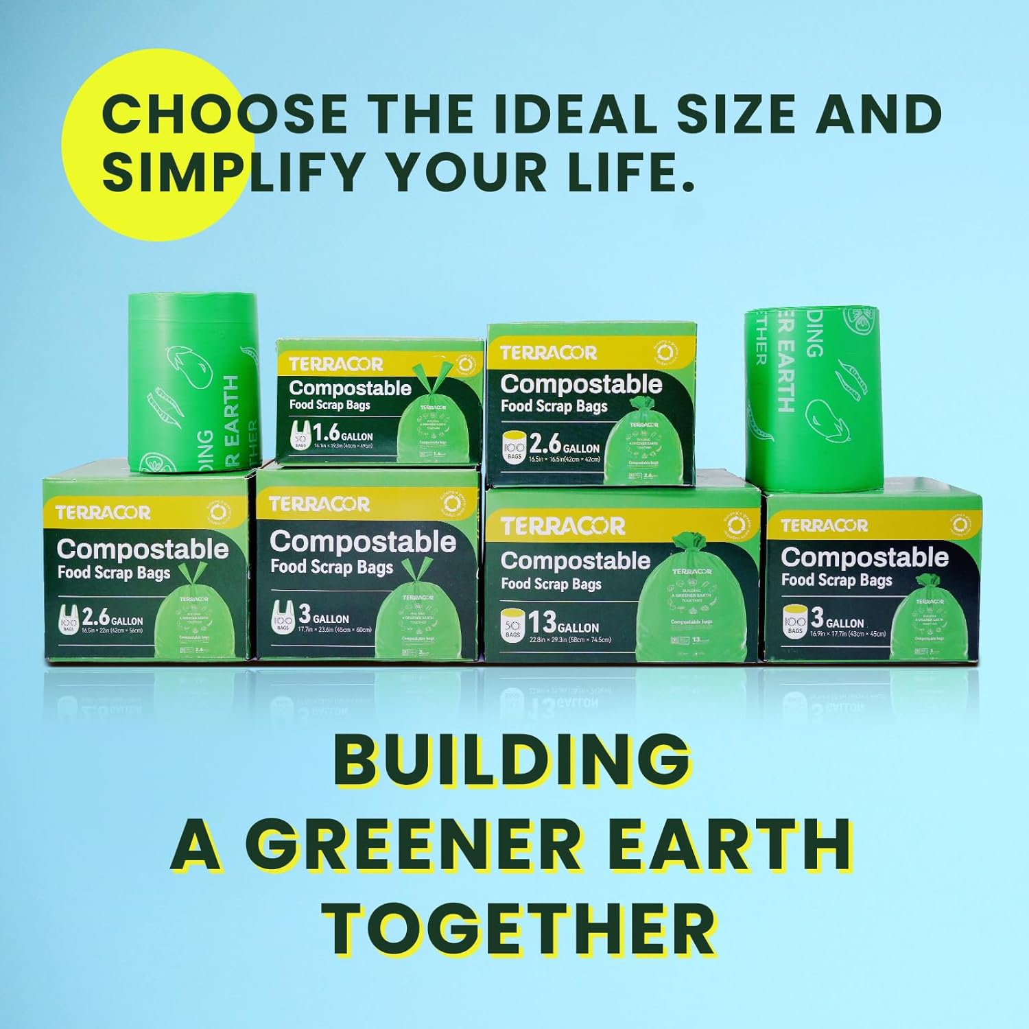 - More Responsible Choice:We all share the responsibility of saving the Earth. TERRACOR compostable bags are the ethical choice for a cleaner environment. Replace harmful plastic kitchen trash bags with compostable ones to reduce environmental waste.