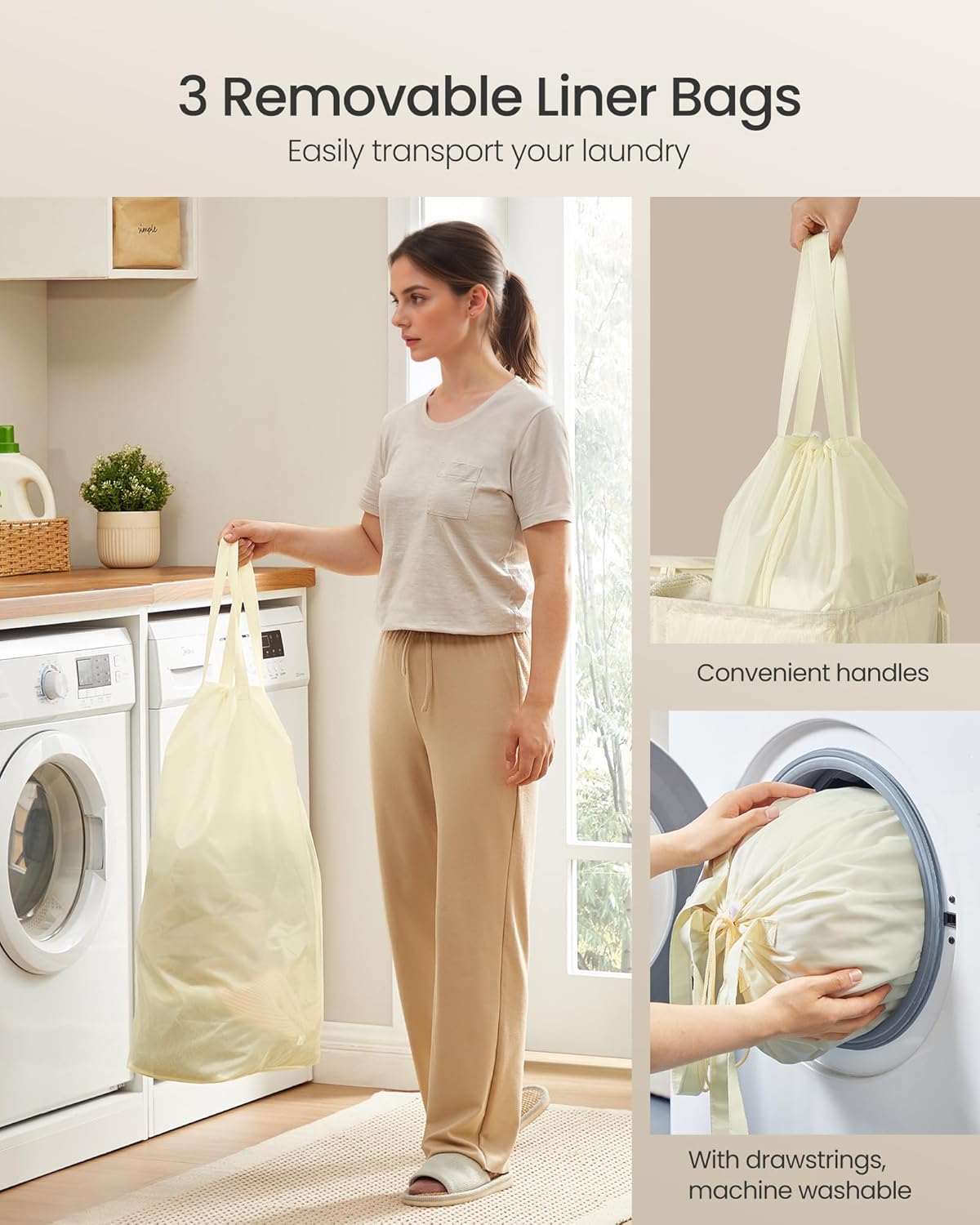 - Removable & Machine-Washable Bag: The inner bag with handles can be removed, easily carried wherever you need, and secured with the drawstring to prevent contents from spilling out. It is also machine-washable