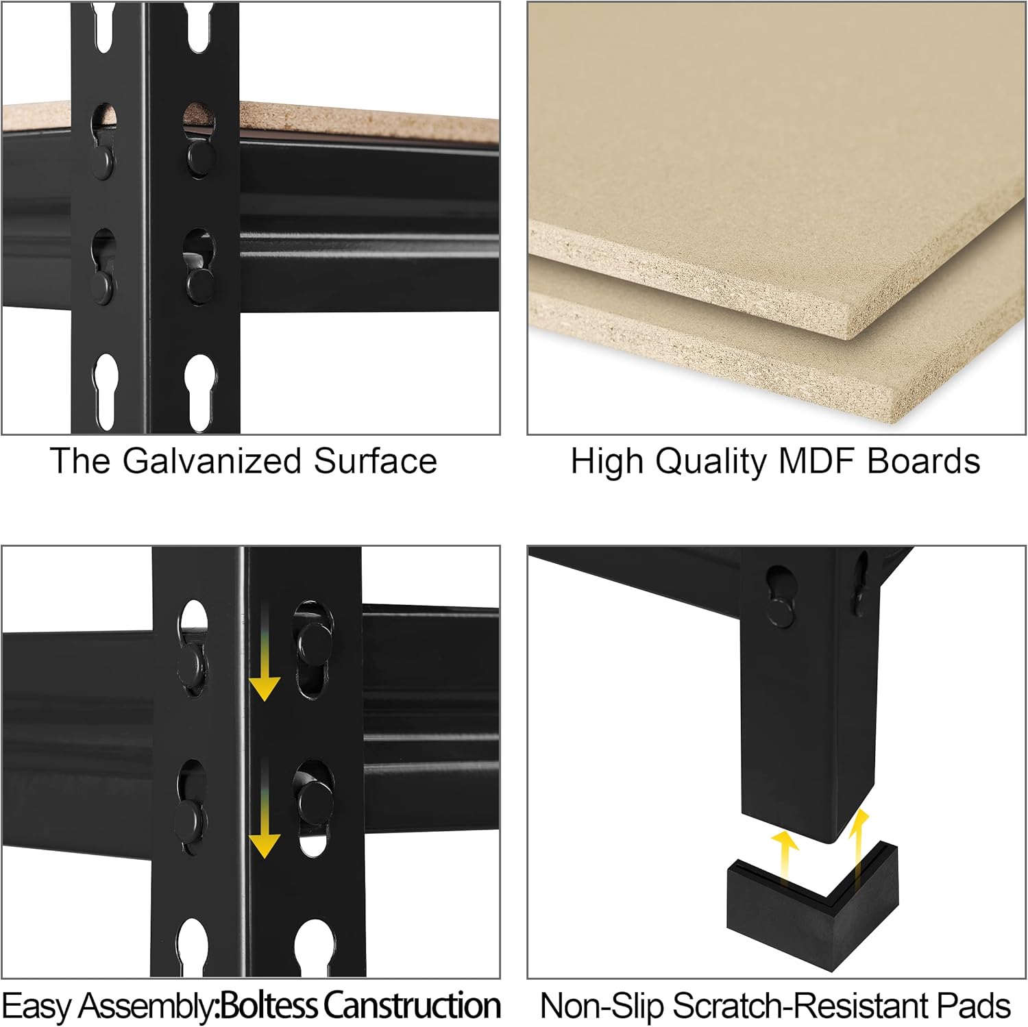 - 【PROTECTIVE RUBBER PADS】: This standing utility shelf is equipped with rubber footpads at the bottom of the legs, which effectively protect the floor from being scratched. To some extent, the footpads also add extra stability and avoid the garage shelves sliding accidentally
