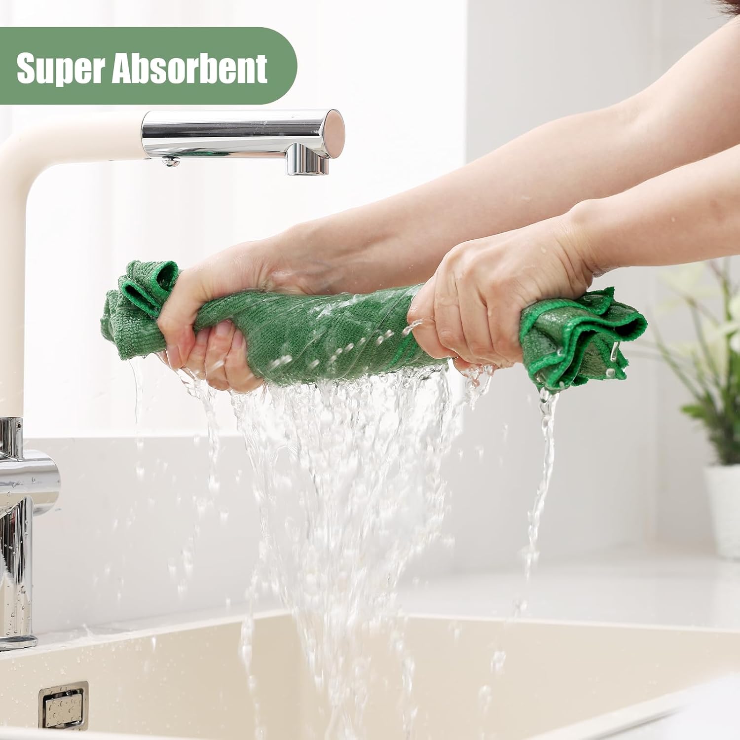 Homaxy Microfiber Kitchen Towels and Dishcloths Set, 12 Pack Soft and Absorbent Dish Hand Towels Bulk, 28 x 16 Inch & 12 x 12 Inch Quick Drying Rags for Washing Dishes, Grass Green