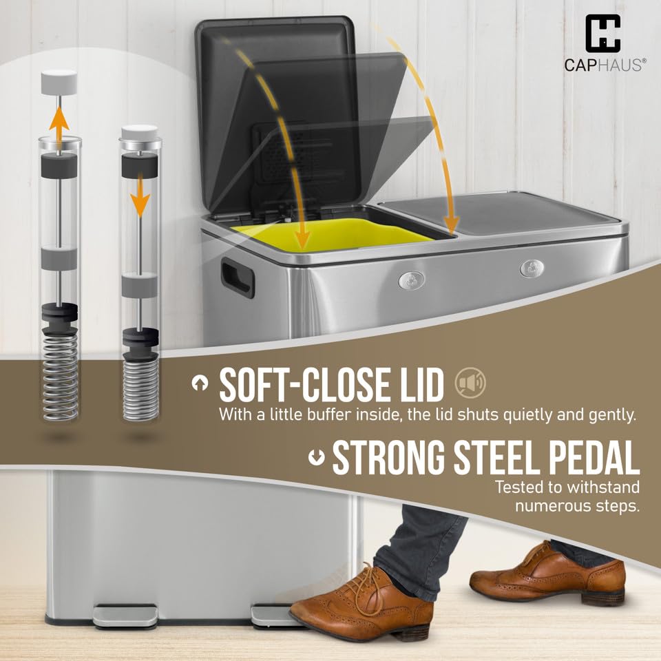 - Durable Construction: With soft-close double lids and sturdy pedals, this trash can ensures quiet, controlled closures and long-lasting durability; built for frequent use, it provides reliable, practical waste management for any home or workspace