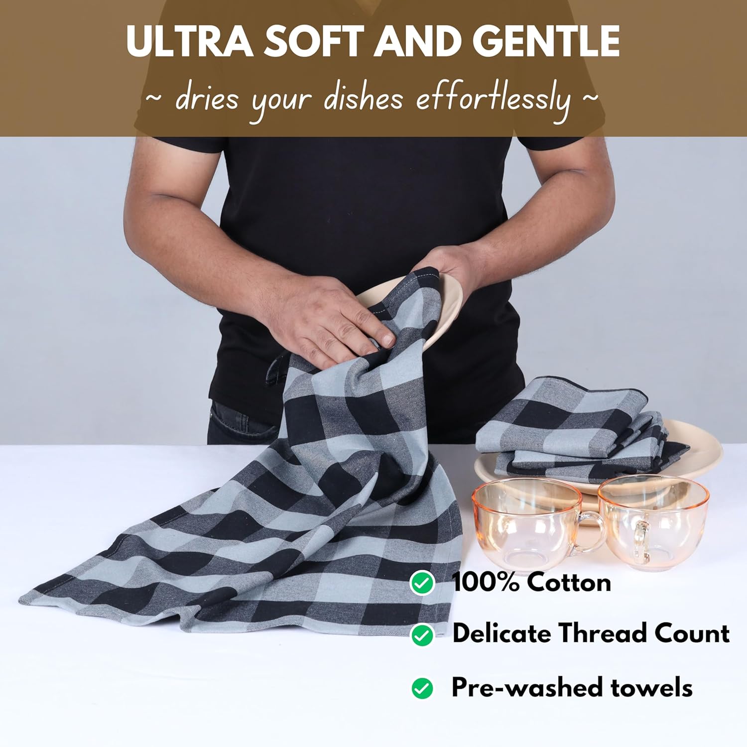 - SUPER ABSORBENT: Say goodbye to spills and wet dishes! Our towels soak up liquids in a flash, making your kitchen cleanup quick and effortless.