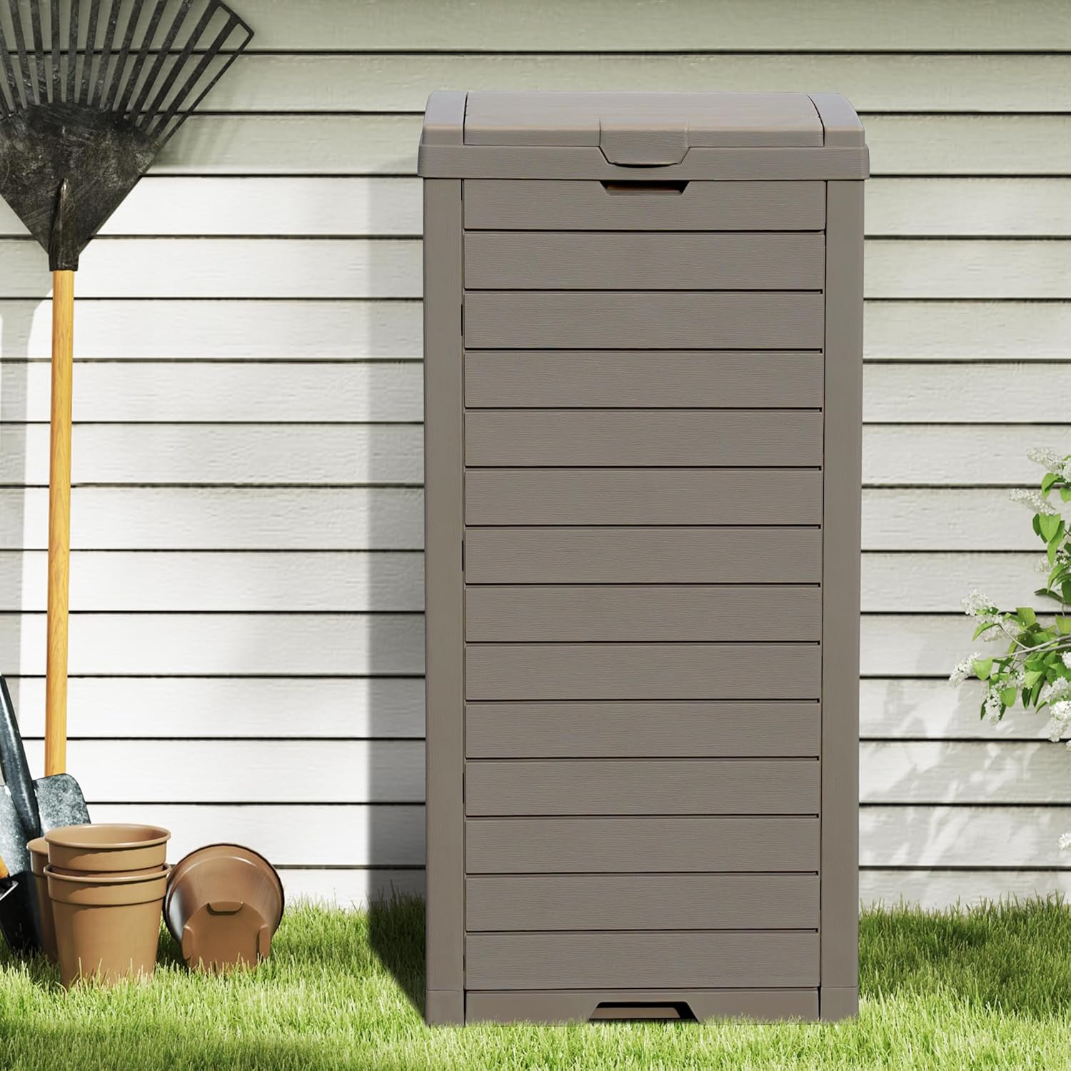 - Effortless Assembly: Enjoy a quick and easy setup with minimal tools required, allowing you to start using your new waterproof resin garbage bin right away; Transform any deck or backyard setting with this practical and stylish solution