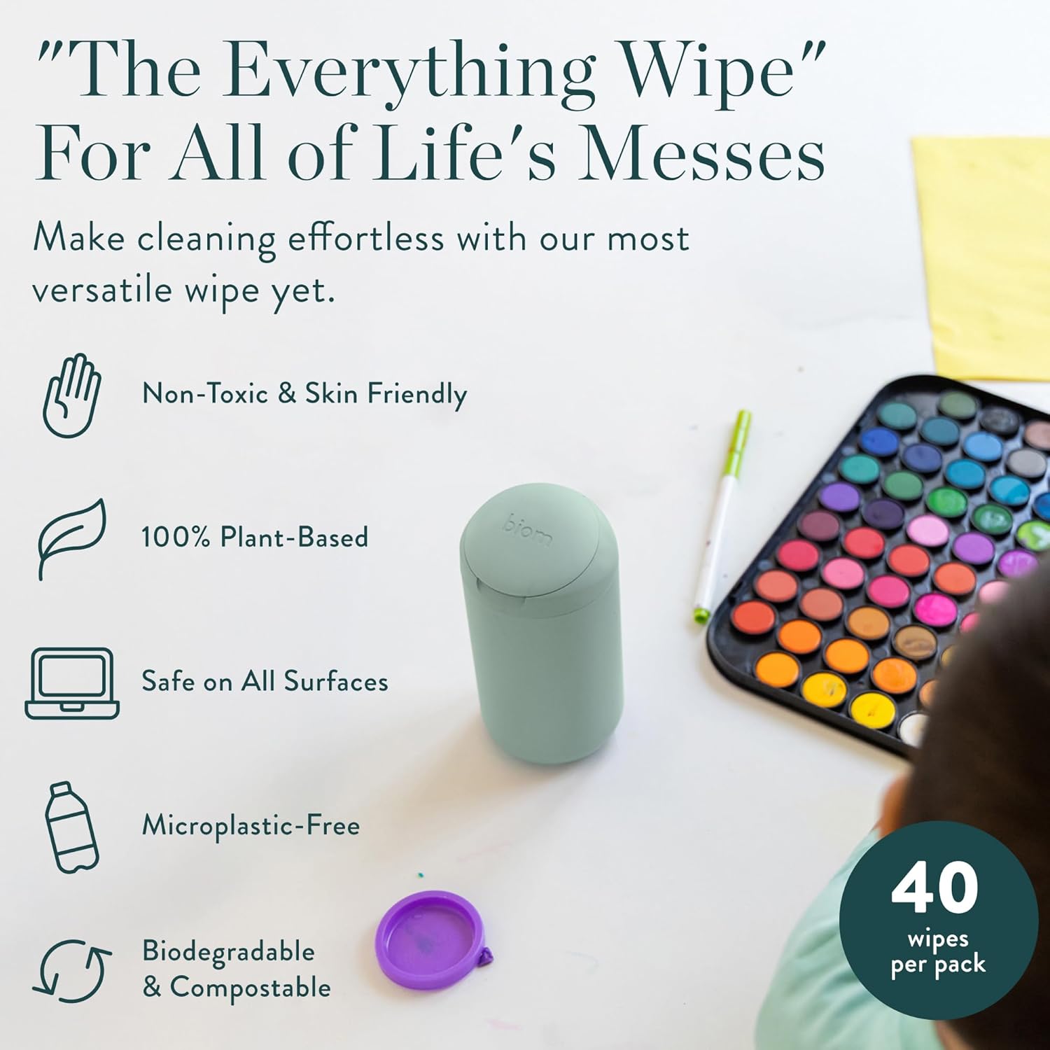- ECO-WARRIOR APPROVED: Biom's All-Purpose Wipes are 100% plant-based and biodegradable. With a blend of all natural ingredients, our wipes are a testament to our commitment to sustainability, ensuring your home stays clean while preserving the planet. Safe and convenient to use as travel wipes, car wipes, cat wipes, surface cleaner, toy cleaner, and camping wipes.