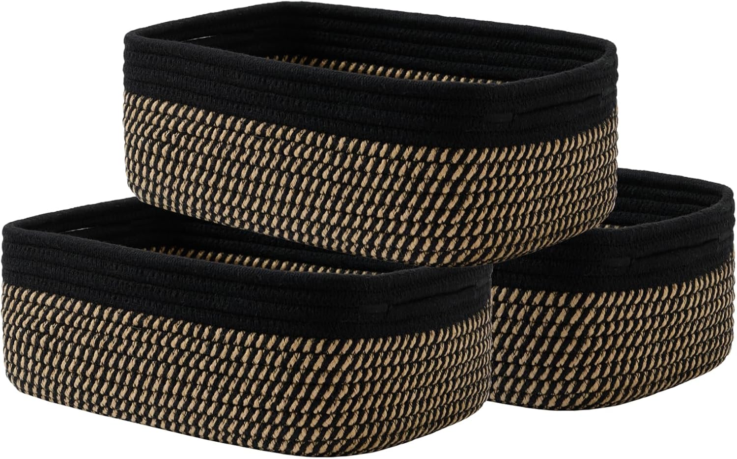 Small Woven Basket, 12 x 8 x 4.5 Inches, Storage Basket for Organizing, Cute Small Rope Shelf Closet Cube Storage Bins Baskets for Shelves, Dog Toy Gift Baskets Empty, 3 Pack Black & Brown
