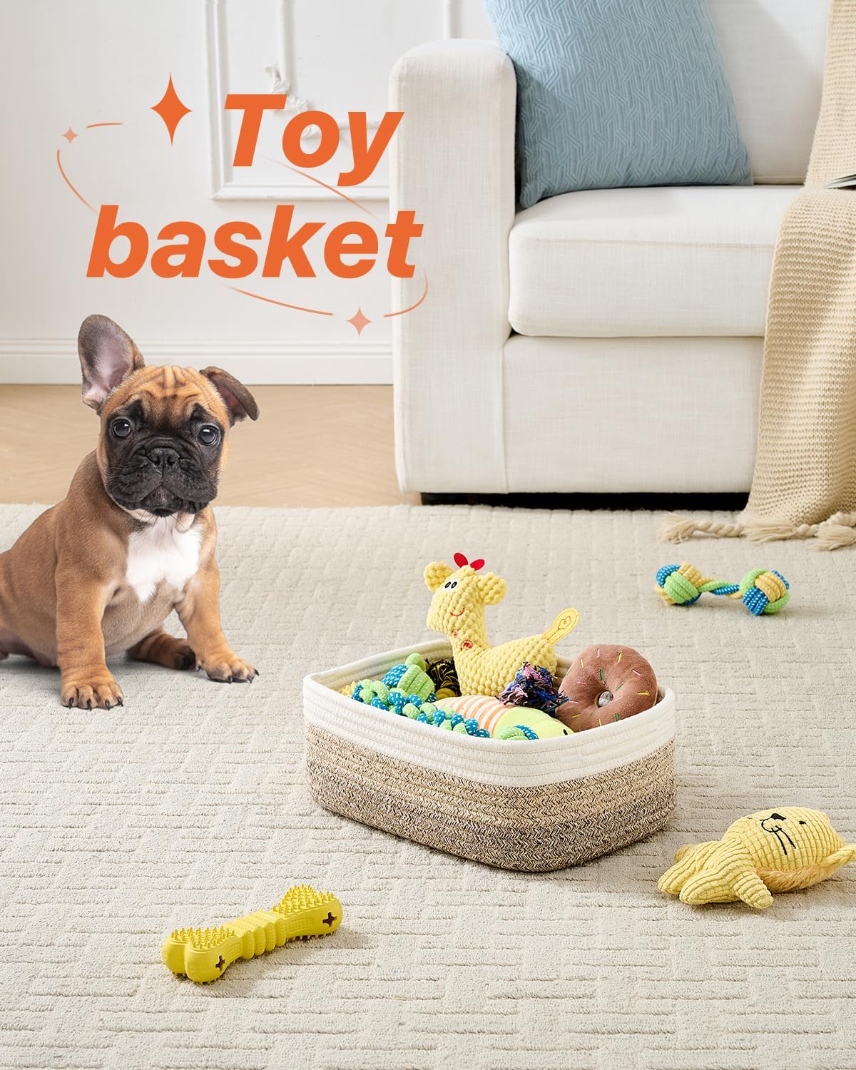 - [ Safe & Durable ] Our small woven basket is made of 100% natural cotton rope that is sturdy yet soft to touch, odor free, free of harsh chemicals, no hard edges that protect your precious furniture and flooring from scratches. So, it's a reassuring choice for families with babies and pets. We use high-quality ropes and hand-woven by skilled artisans to ensure the quality of our cotton rope baskets, tightly constructed and long-lasting