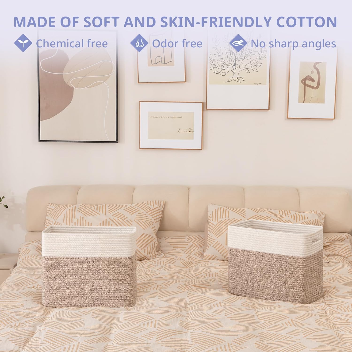 - 100% Cotton Rope Storage Baskets:OIAHOMY storage bins are made of high-quality natural cotton, chemical free and safe for kids and pets. It will not scratch your furniture and floor and more firm than plastic basket