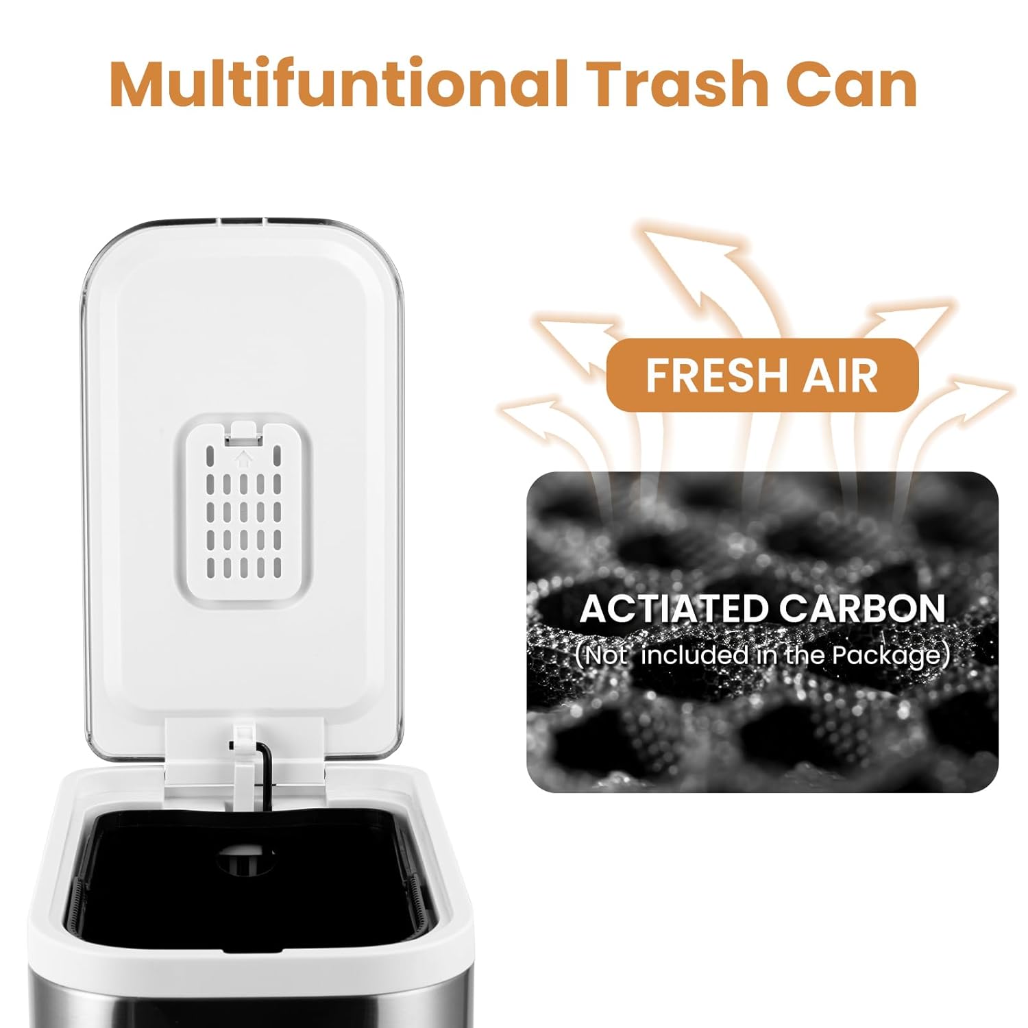 - Soft Close & Stay Open Lid:The stainless steel trash can is made of a stay open function and pushes the lid at 90° when release the pedal.The soft close lid has a great feature—it closes quietly and smoothly.