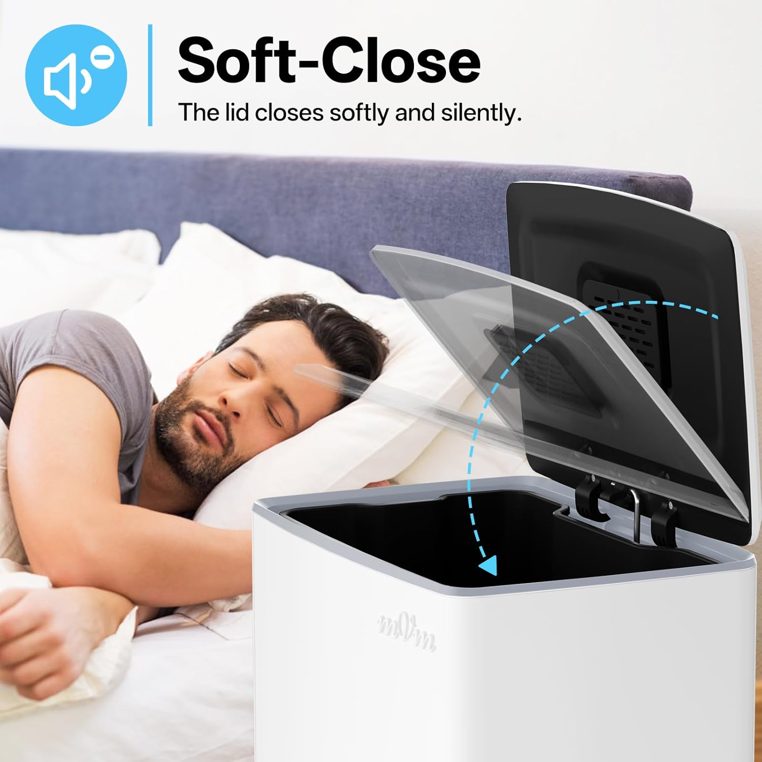 - Odor seal: The mVm trash bin is equipped with a carbon fiber filter that absorbs and neutralizes odors inside the bin, and the lid closes tightly to prevent odors from escaping.