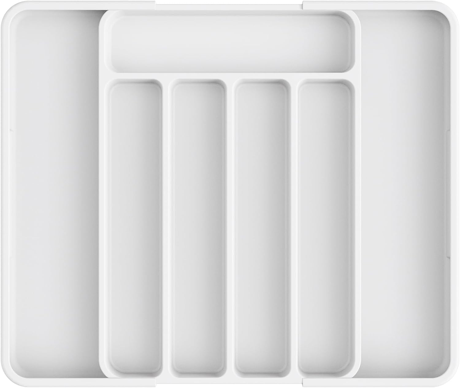 Kitsure Cutlery Drawer Organiser for Kitchen - Adjustable Cutlery Tray for Effortless Utensil Sorting, Versatile Kitchen Storage & Organisation Solution, 12.13" x 1.54" x 8.07"~13.90", White