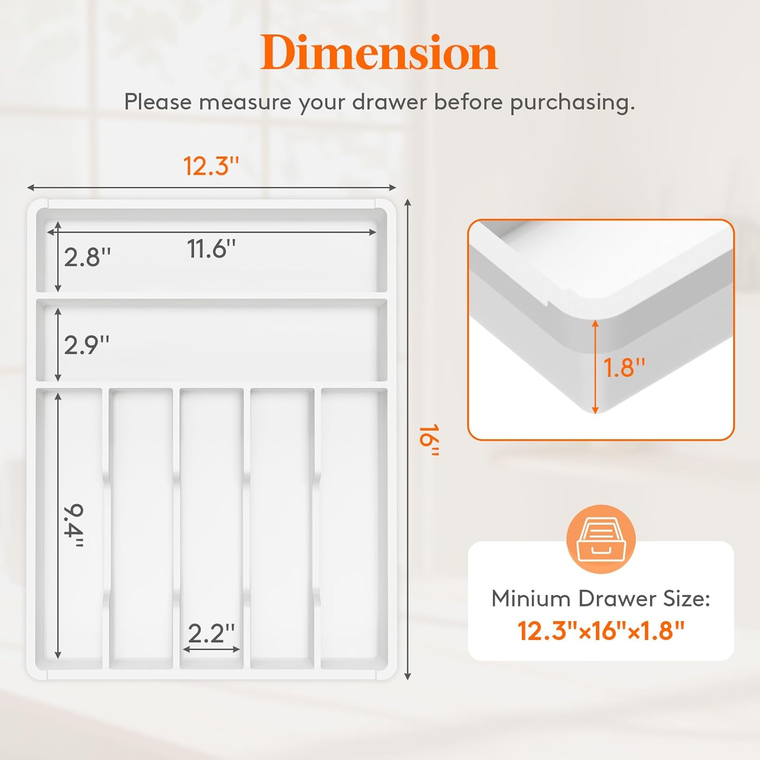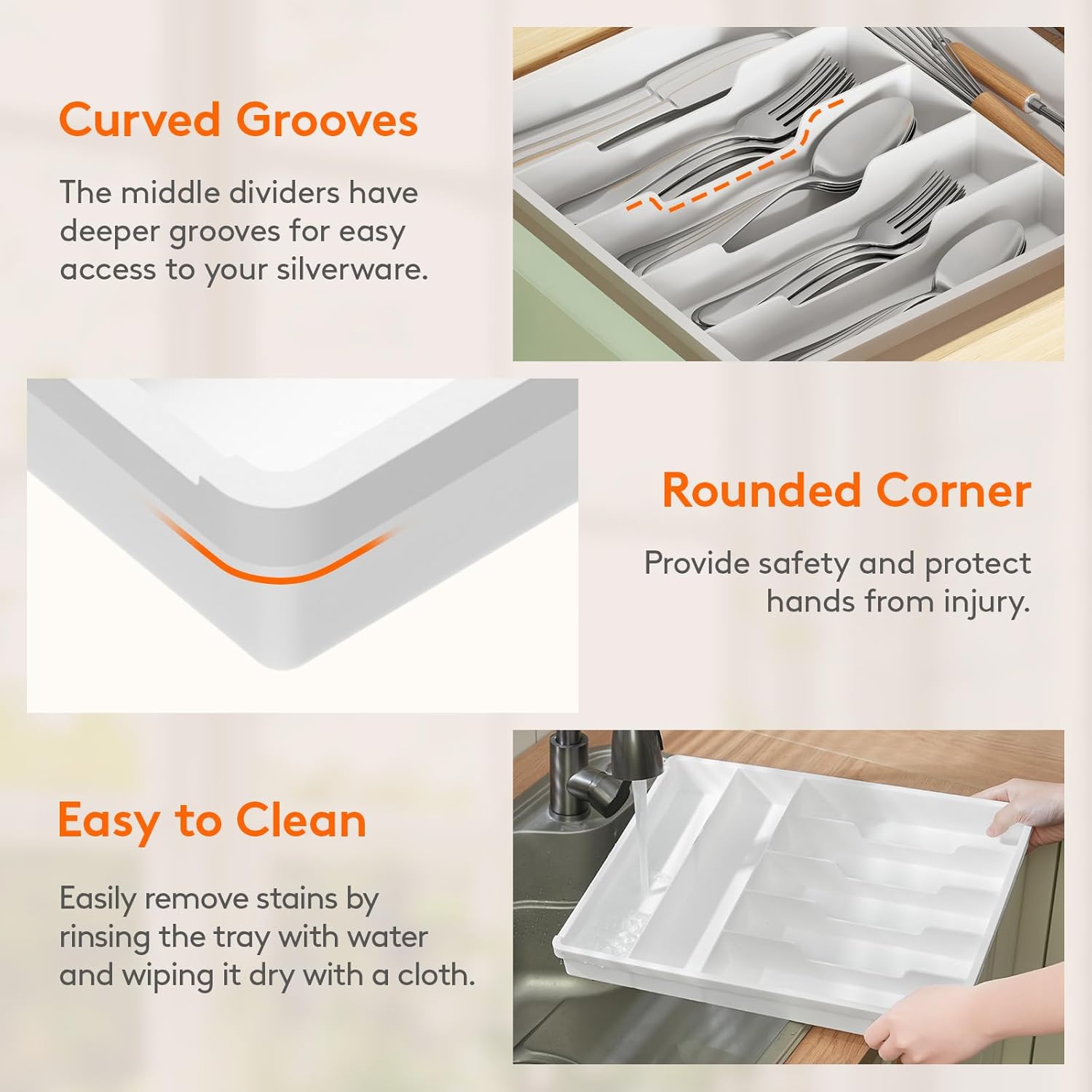 - Robust and Safe: This kitchen drawer organizer is crafted from premium PP material, BPA-free and built to last. It ensures your silverware is stored in a healthy, safe environment for worry-free use