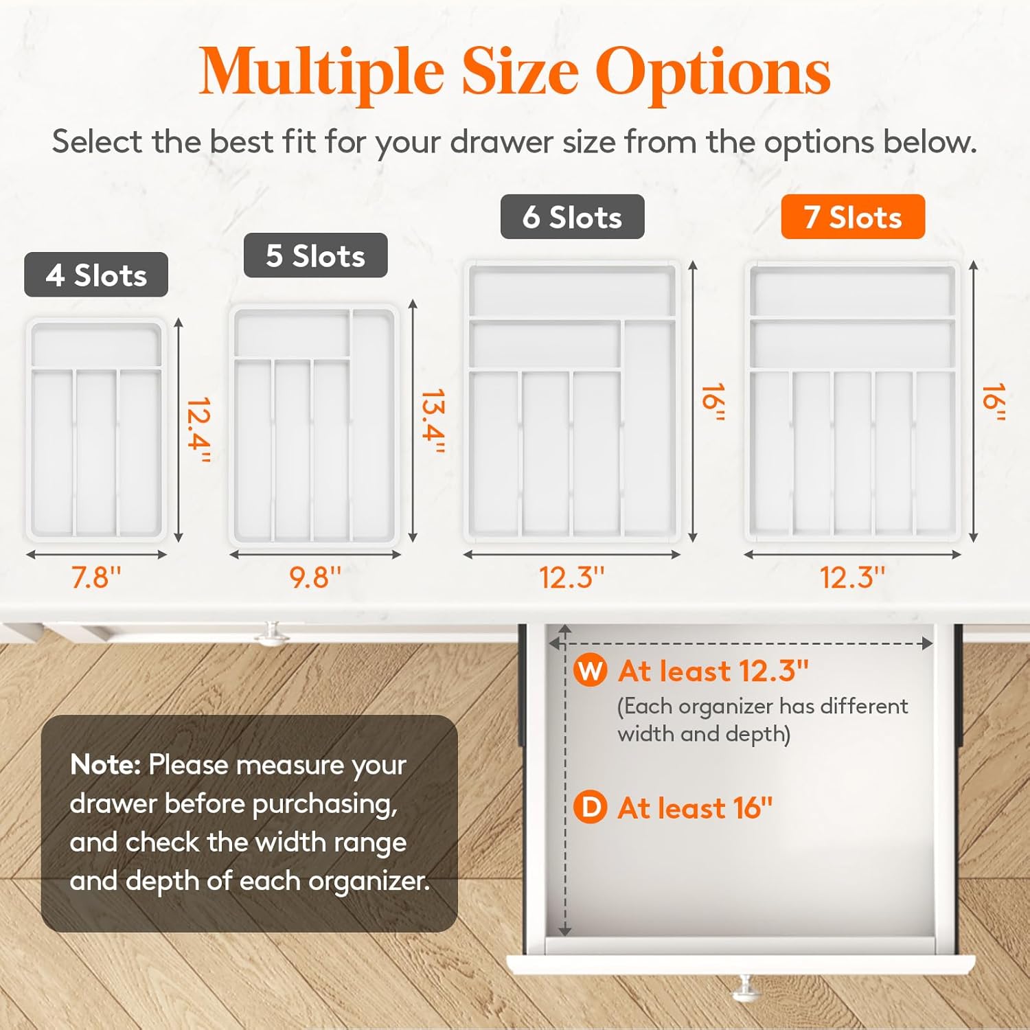 - Sort Your Silverware: The silverware tray comes with 7 compartments, creating more space in drawers for spoons, cutlery, and flatware. Streamline your cooking with a no-install organizer that keeps cutlery at your fingertips