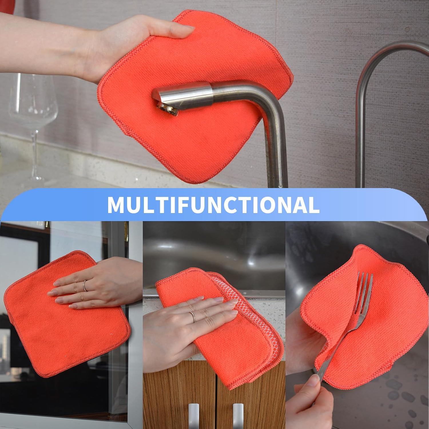 KinHwa Kitchen Washcloths for Dishes Absorbent Microfiber Dish Cloths Quick Dry Dish Rags with Poly Scour Scrub Side Ideal for Kitchen Cleaning (Red, 7inchx7inch 9 Pack)