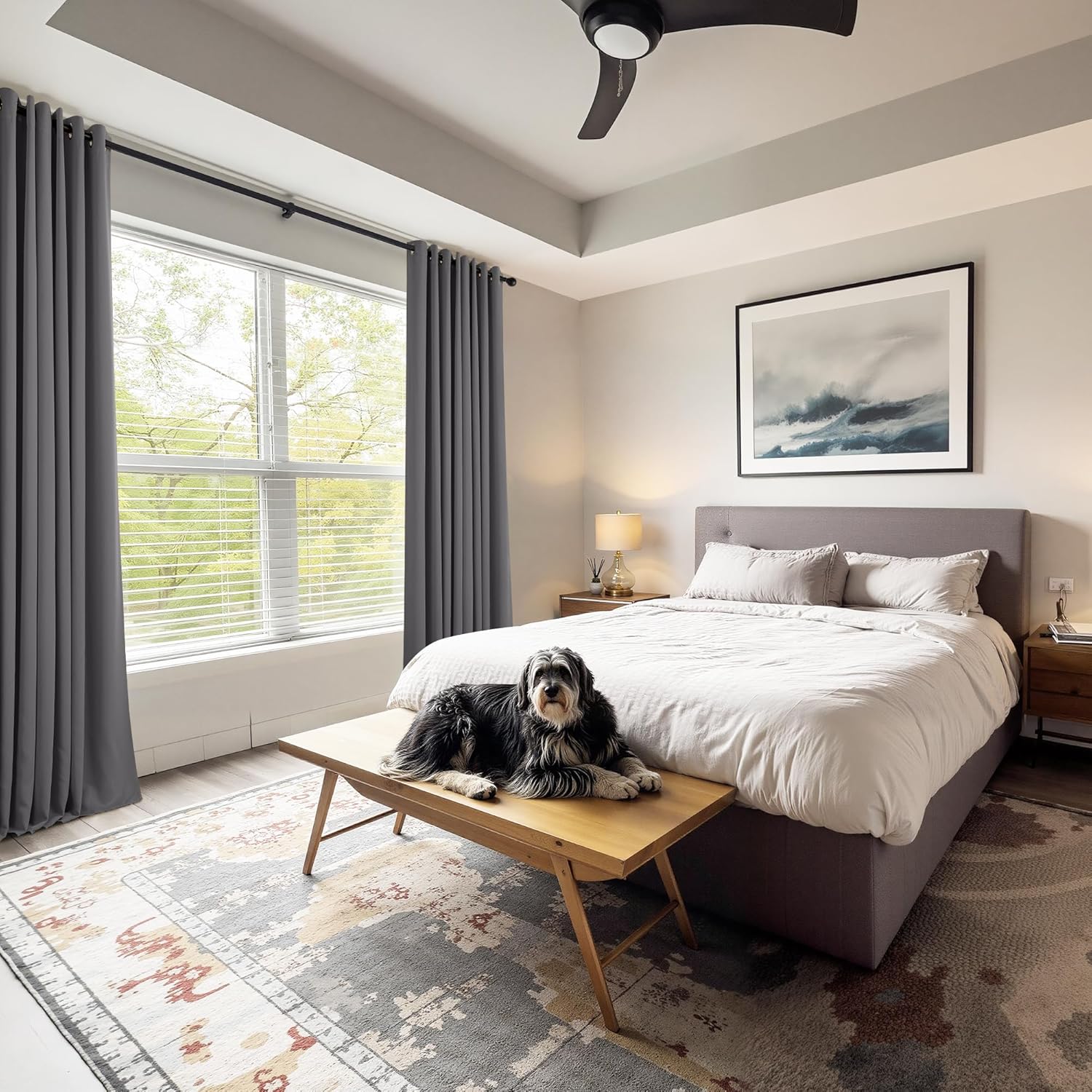 PONY DANCE Grey Blackout Curtains for Bedroom 84 Inch Length 2 Panels Set, Privacy Thermal Insulated Room Darkening Grommet Drapes for Living Room Window, W34 x L84 Inch