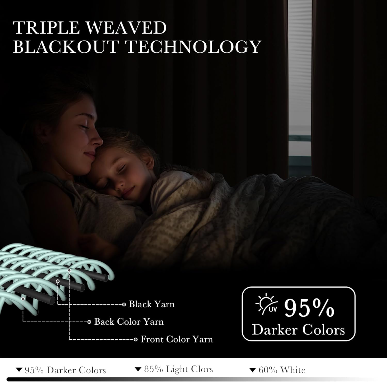 - LIGHT CONTROL - Adopt the triple weave technology, the heavy and soft fabric can prevent harsh sunlight and UV ray from passing through the windows. Dark color works better than the light one