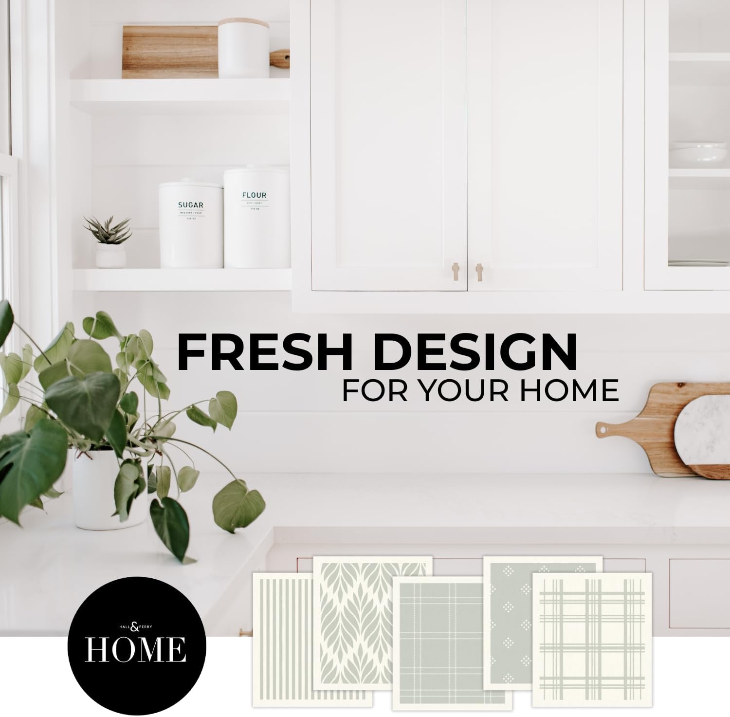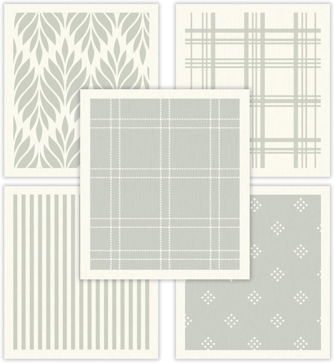 - Stylish Neutral Designs – A modern mix of soft gray/tan (greige) floral and stripe patterns that complement any kitchen decor while adding a touch of elegance to your cleaning routine.